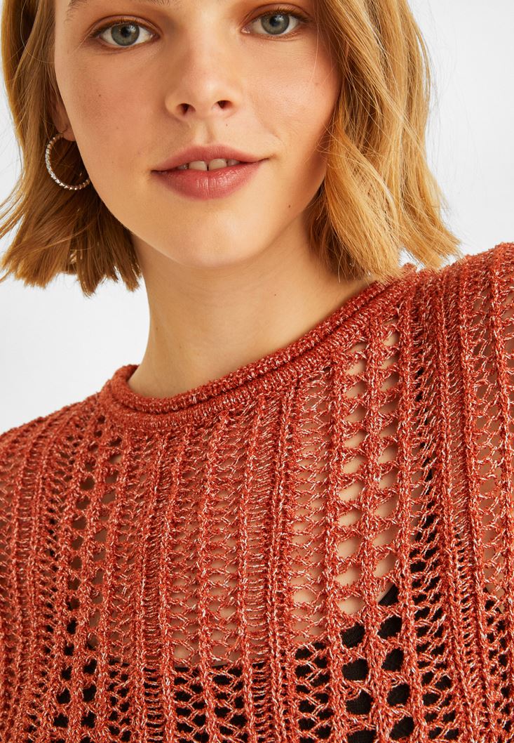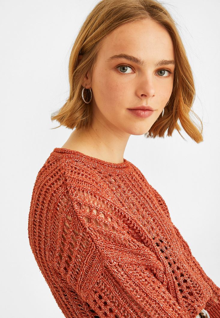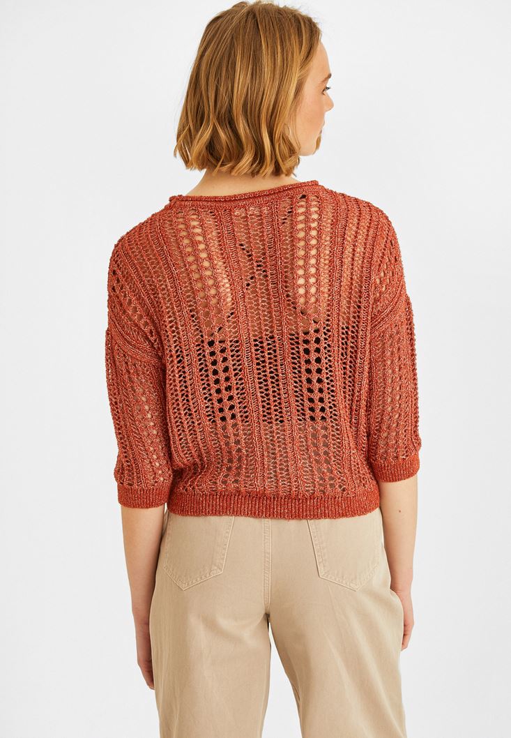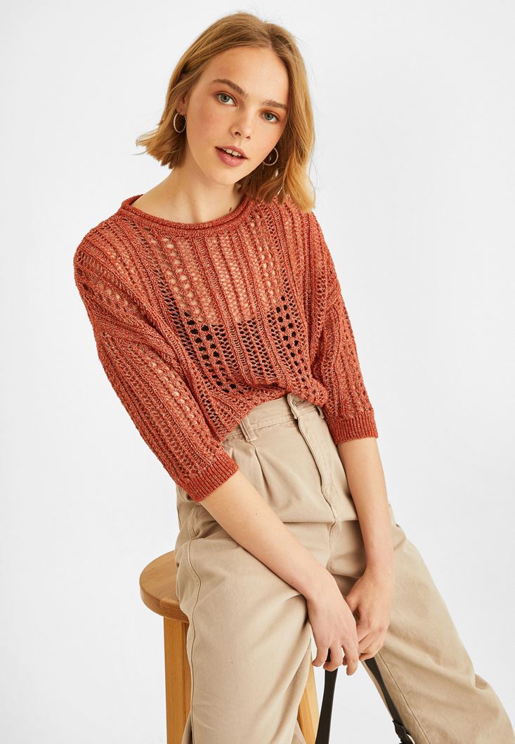 Kiremit Bisiklet Yaka Ajurlu Triko