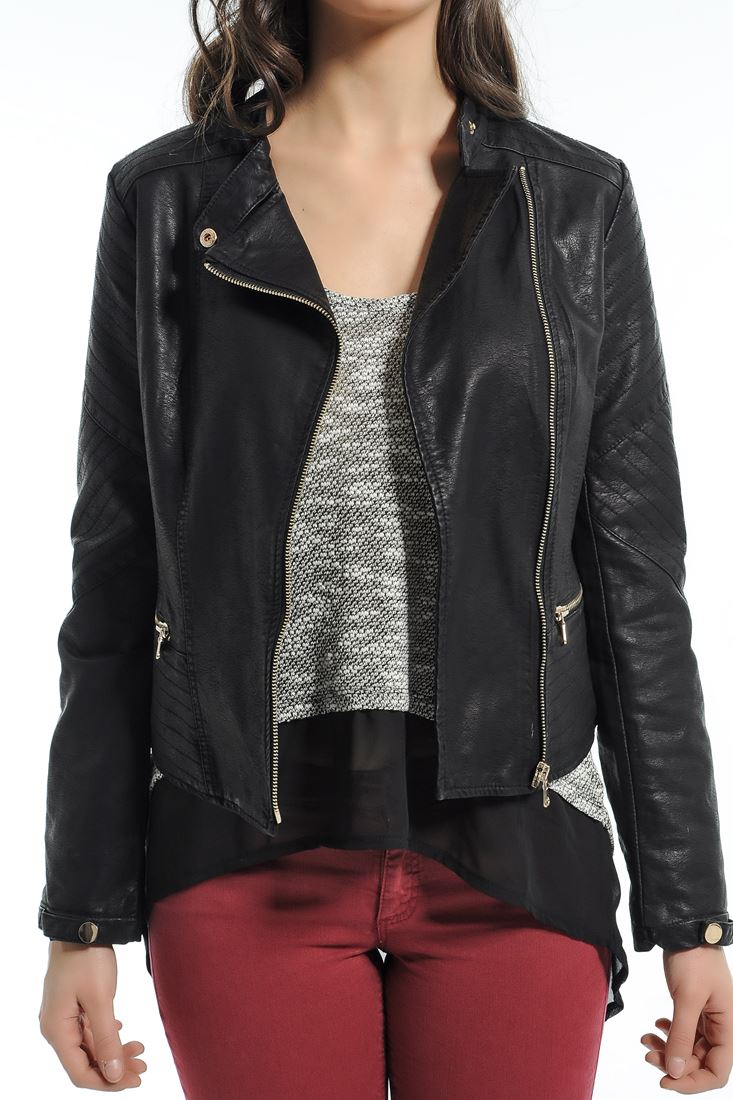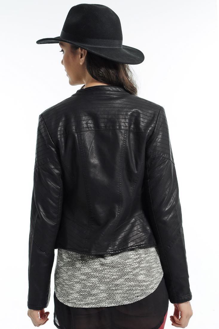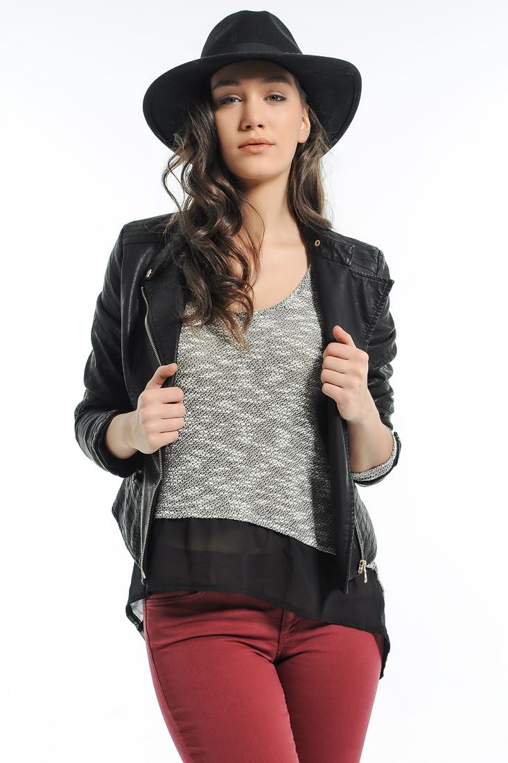 • Bayan Siyah Bisiklet Yaka Deri Ceket