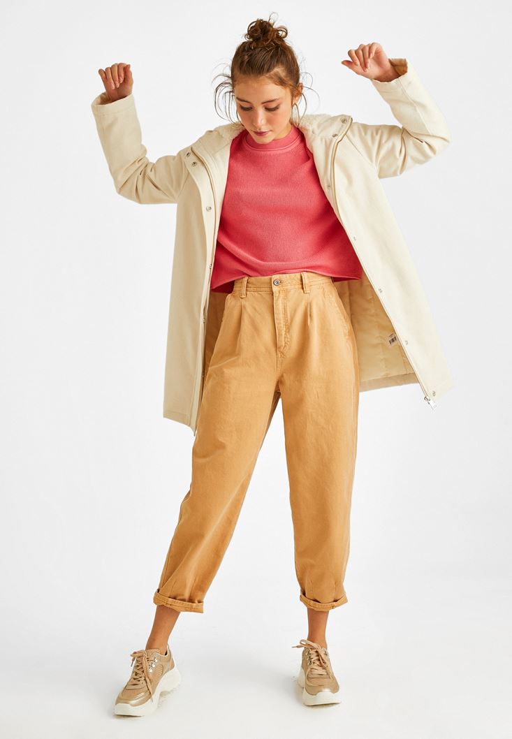 Bisiklet Yaka Kısa Kazak modeli, pamuk içerikli hoş dokusu ve fitilli görünümü eşliğinde Oxxo'da karşınıza çıkıyor. Kadın triko kazak modeli, crop kesimiyle ve bol kalıbıyla sizleri hem rahatlık hem de şıklık ile buluşturuyor. Kadın kısa kazak modeli, bisiklet yaka ayrıntısıyla ve hoş renkleriyle göz alıcı görünüyor. kadın triko kazak modelini, yüksek belli pantolonlarla veya eteklerle kullanarak hayal ettiğiniz kombinlere ulaşabilirsiniz. Triko kazak modeliyle deri ceketler veya kürk kabanlar tercih ederek fark yaratan görünümler elde edebilirsiniz. Oxxo'nun her sezon dikkat çeken detaylarla ve içinizi ısıtacak renklerle sizlere sunduğu kadın triko kazak modelleri ile kombinlerinizi taçlandırabilirsiniz.