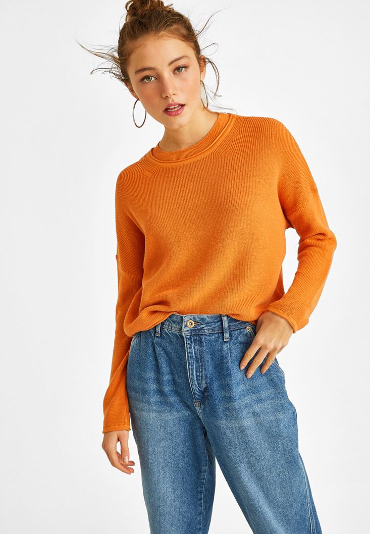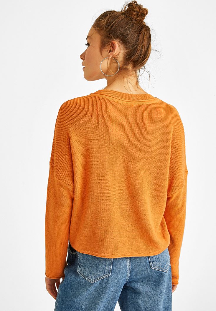 Turuncu Bisiklet Yaka Kısa Kazak