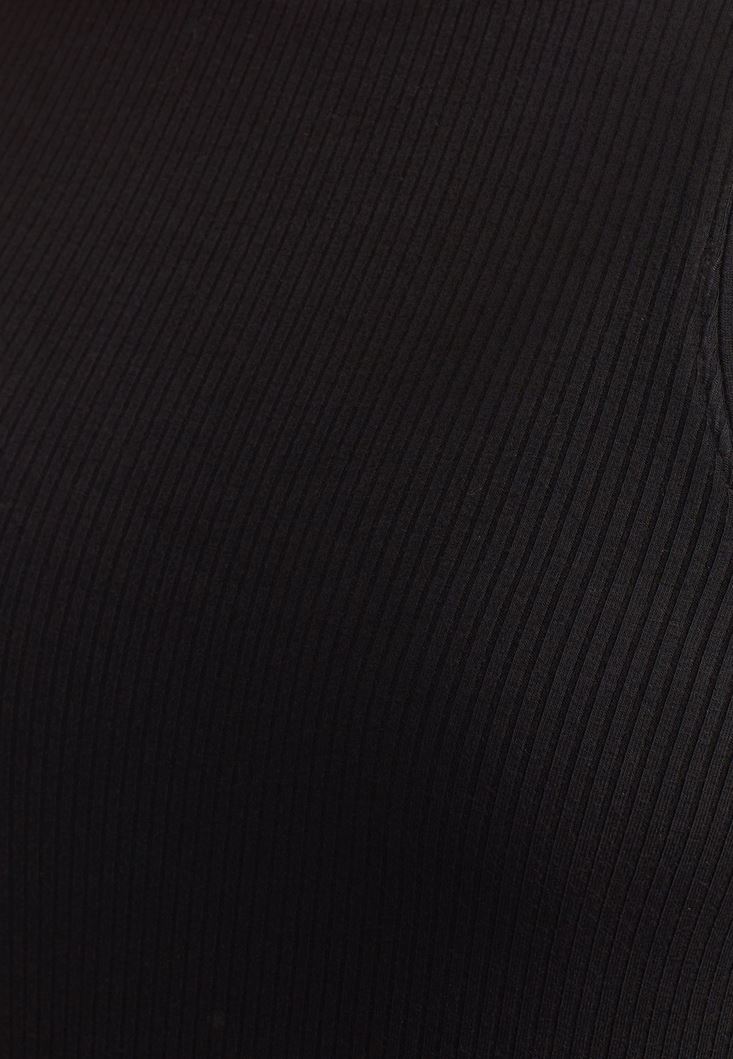 Siyah Bisiklet Yaka Midi Boy Elbise