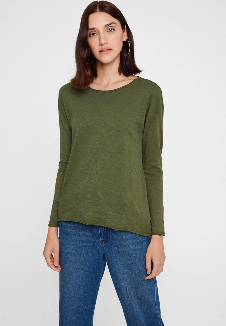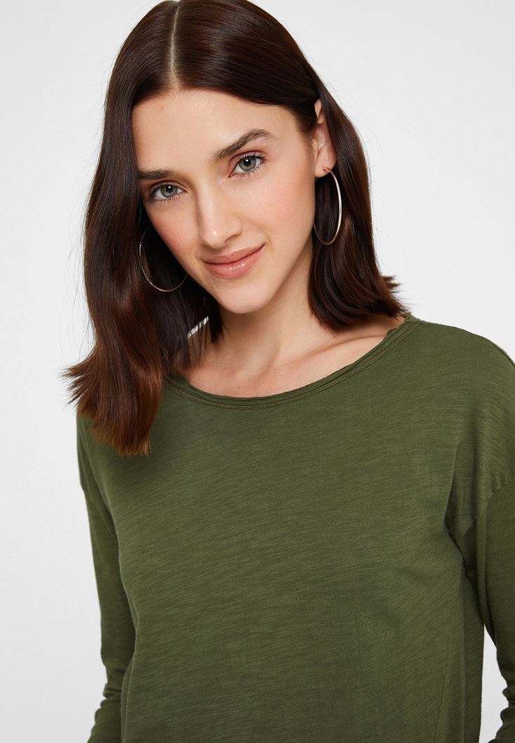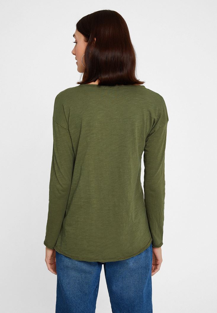 Yeşil Bisiklet Yaka Pamuklu Tişört