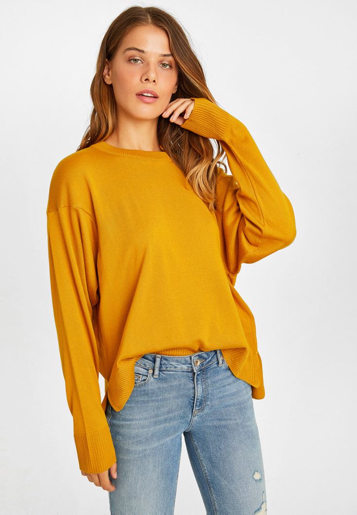 • Bayan Sarı Bisiklet Yaka Salaş Kazak