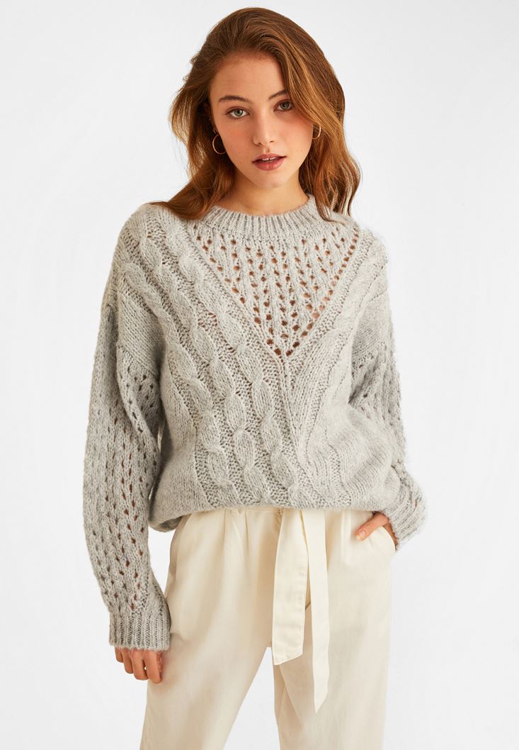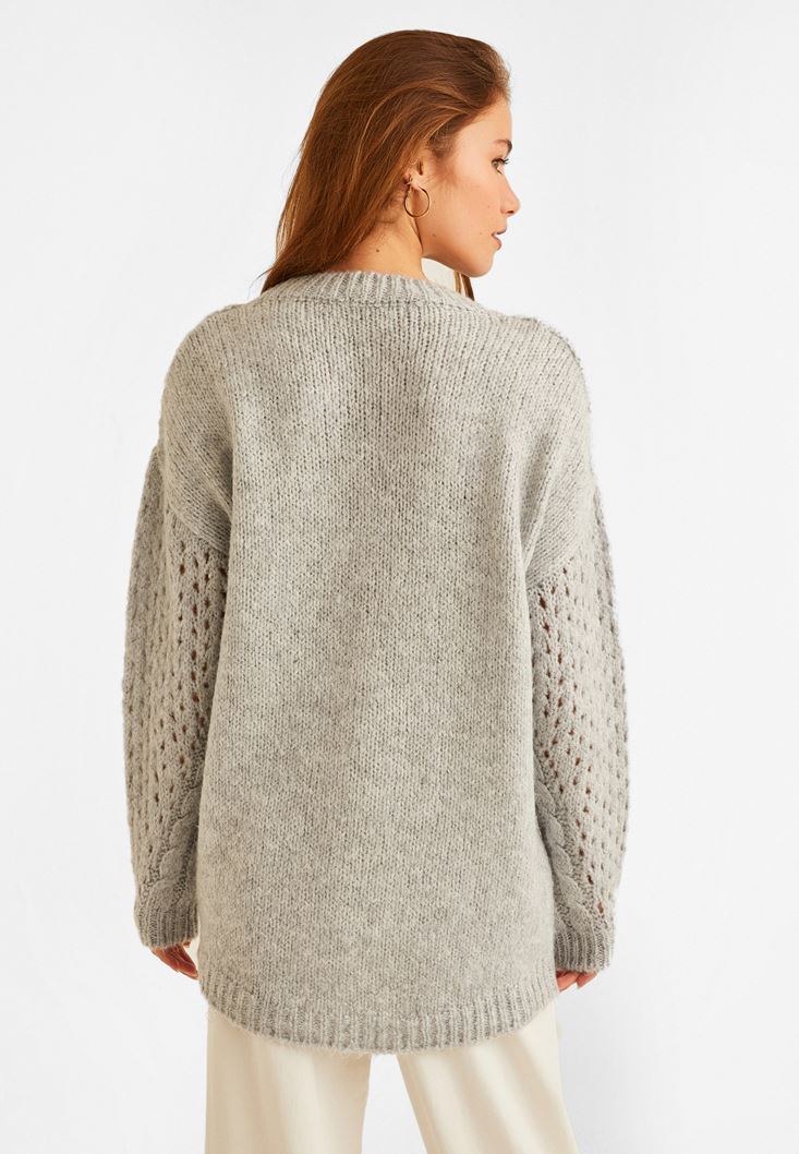 Gri Bisiklet Yaka Salaş Triko Kazak