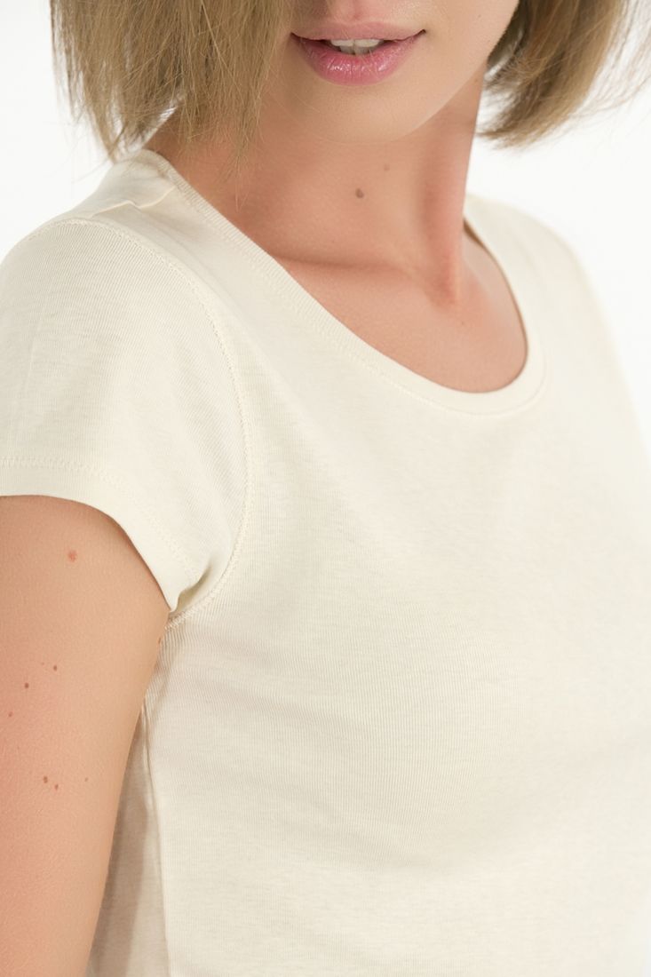 ÖZELLIKLER; Pamuklu kumastan, bisiklet yakali, kisa kollu tisört *Çesitli renk seçenekleriyle günlük kullanilabildigi gibi, kolye ve sal ile daha sik bir görünüm elde edebilirsiniz. ÜRÜN IÇERIGI; %100 Pamuk YIKAMA TALIMATI; 30 derecede makinada benzer renklerle yikayiniz. Agartici kullanmayiniz.Sererek kurutunuz.Ilik ütüleyiniz.
