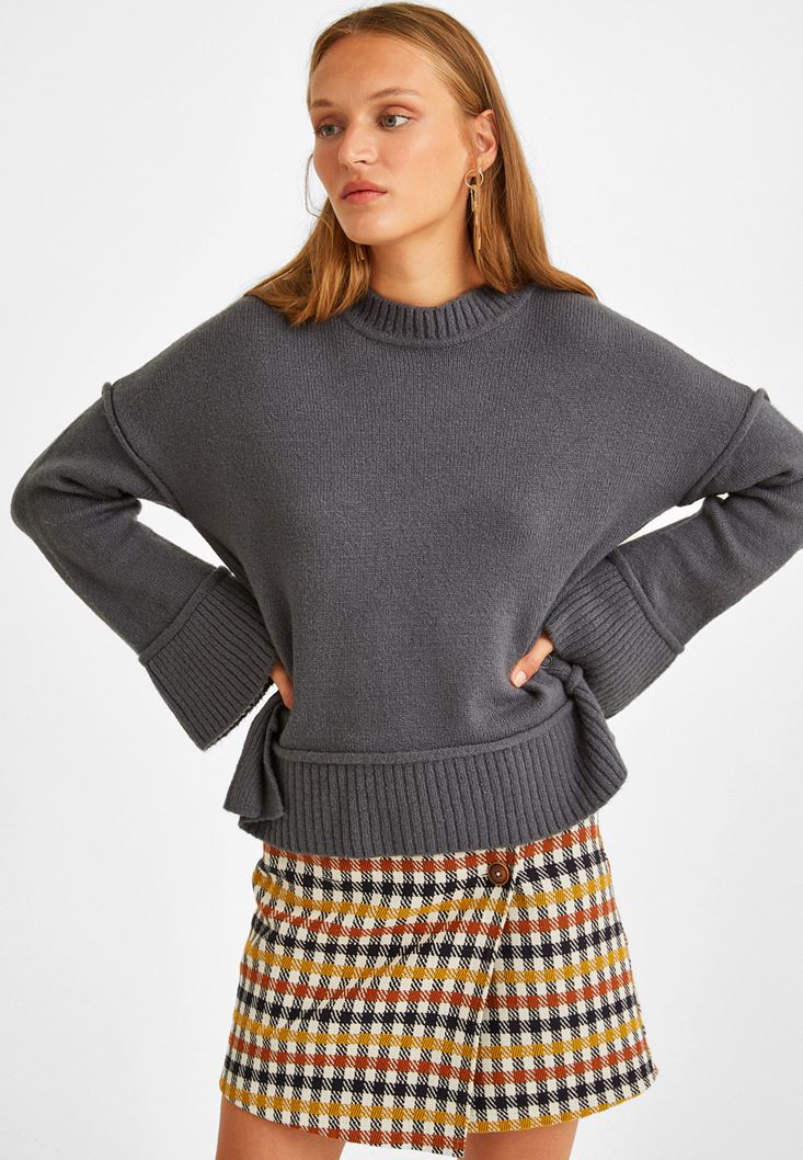 • Bayan Gri Bisiklet Yaka Triko Kazak