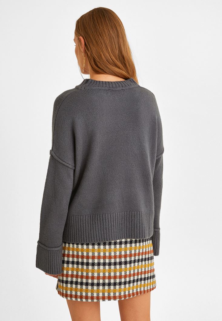 Gri Bisiklet Yaka Triko Kazak