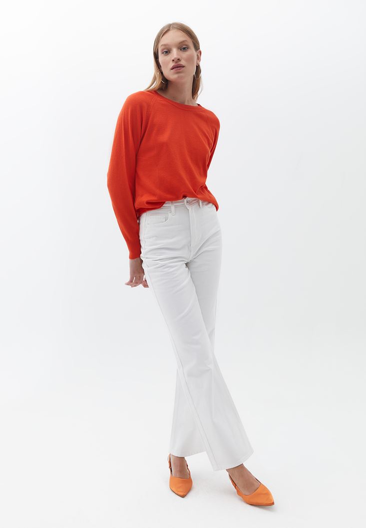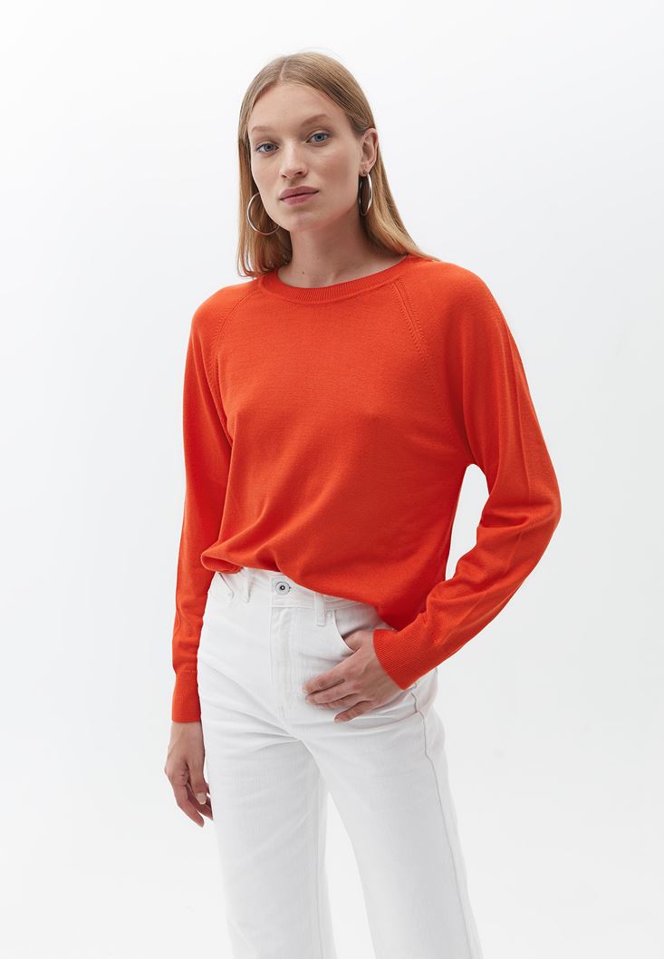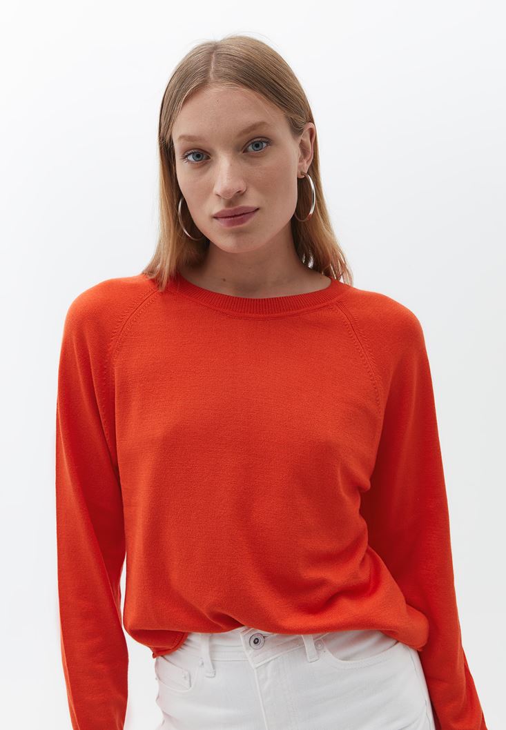 • Bayan Turuncu Bisiklet Yaka Triko Kazak