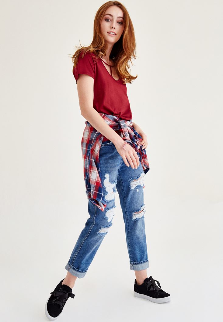 Farkli dokunuslarin pesini birakmayin! OXXO Biye Detayli Basic Tisört ile en sade tasarimlarda bile daha havali olacak detaylarla tarzinizi vurgulayacaksiniz! Denimlerin cool ve özgün tarzinizi yansitirken en iyi tamamlayicilarindan biri olan basic tisört kadın modelleri arasinda biye farkiyla ayrilan tisörtünüzle birlikte daha da havali görünecek. Yirtik ve püsküllü pantolon ya da sortlarin üzerine giydiginizde bir gömlekle tamamlayabileceginiz tisörtü isterseniz taytlarinizla birlikte de kullanabilirsiniz. Sportif detaylarin yükseldigi tarzinizi spor ayakkabi ya da espadrillerle tamamlayabilirsiniz. Sirt çantasinin en iyi tercih olacagi kombinlerinizde sapkalar ve gözlükler de aksesuarlarinizi olusturabilir. Biye detayli basic tisört ile her zaman farkli oldugunuzu göstererek bütün bakislari üzerinizde toplayacaksiniz.