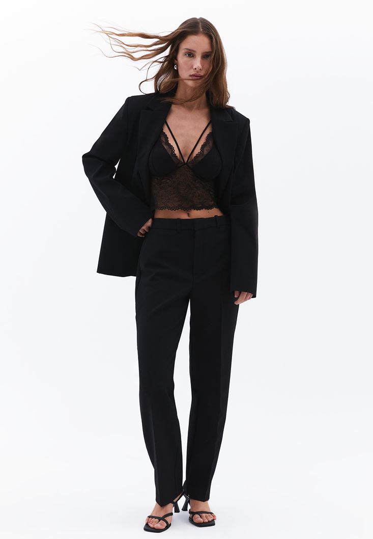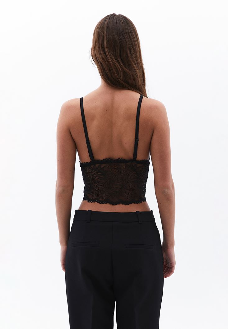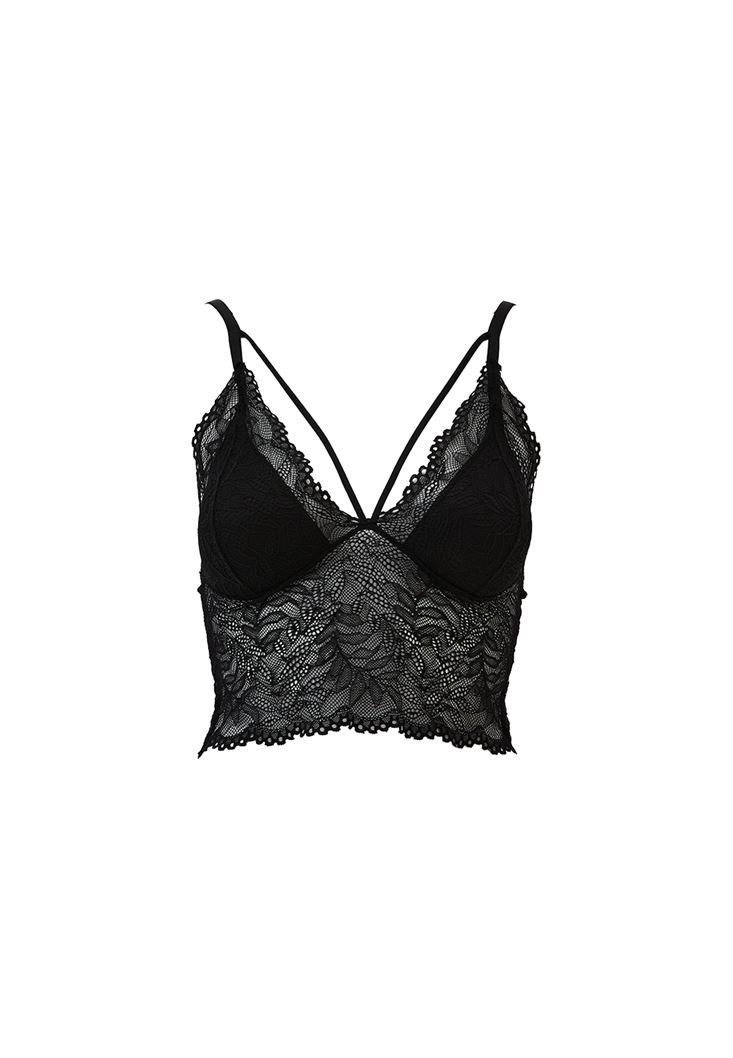 • Bayan Siyah Biye Detaylı Dantelli Bralet