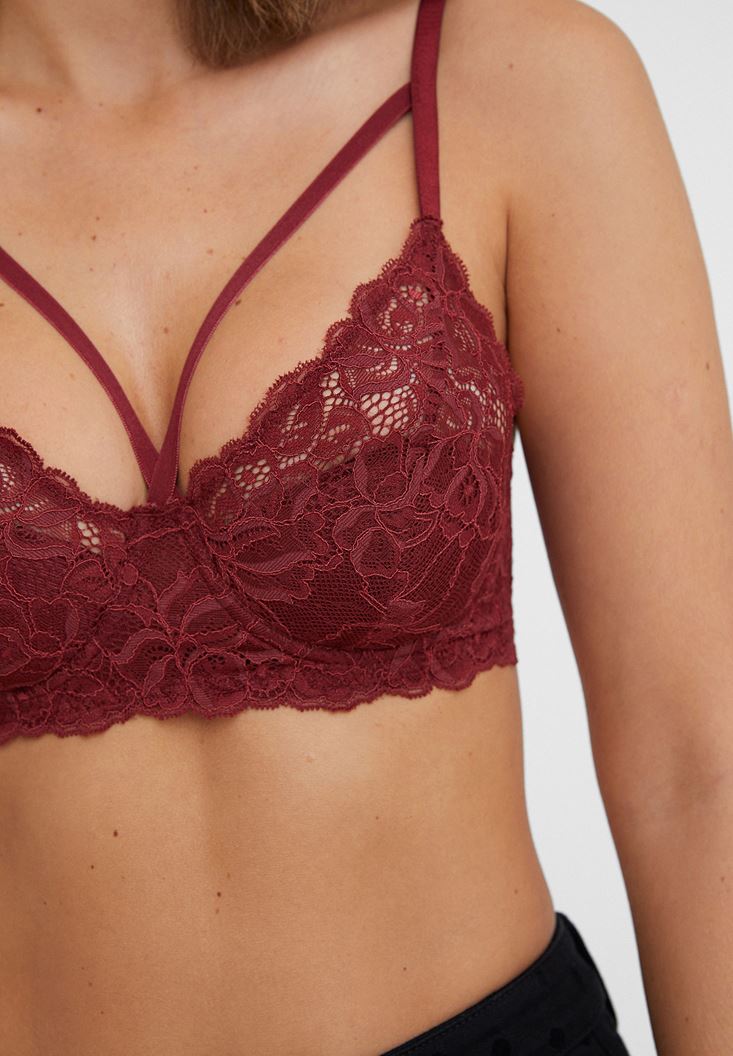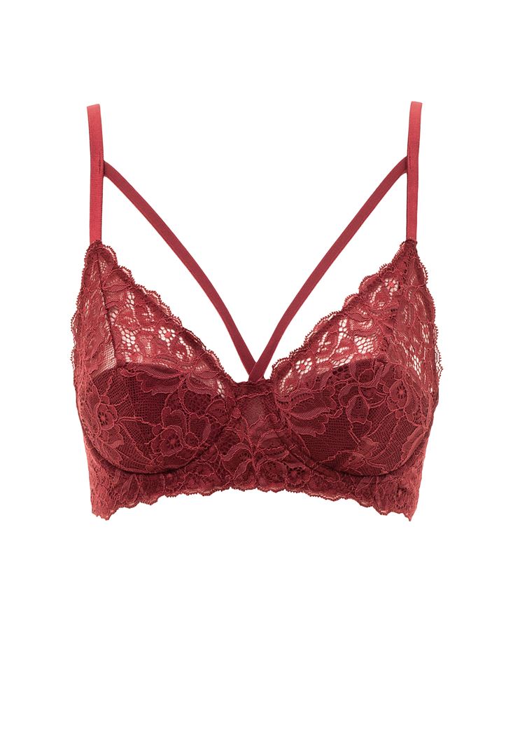 • Bayan Bordo Biye Detaylı Dantelli Büstiyer