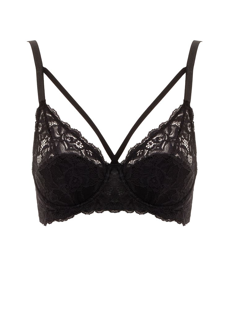 • Bayan Siyah Biye Detaylı Dantelli Büstiyer