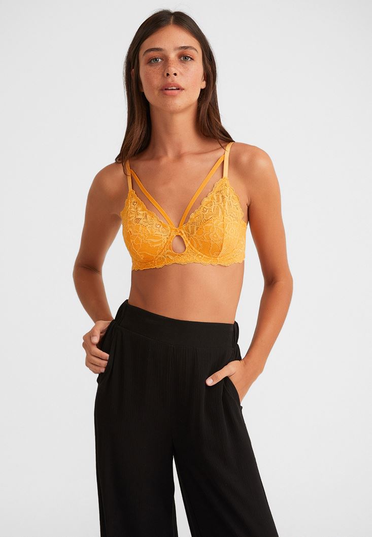 • Bayan Sarı Biye Detaylı Dantelli Büstiyer