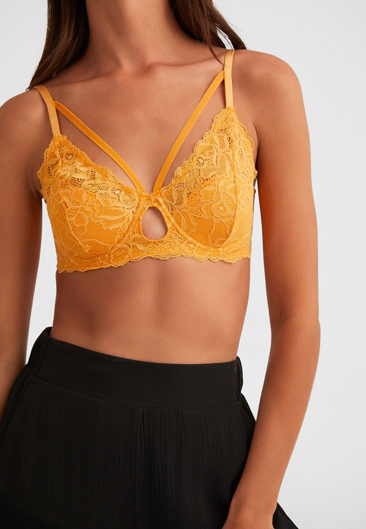 Sarı Biye Detaylı Dantelli Büstiyer