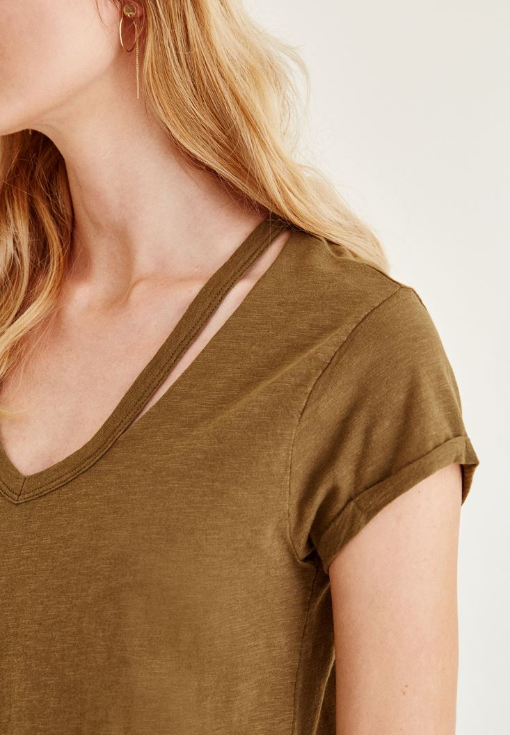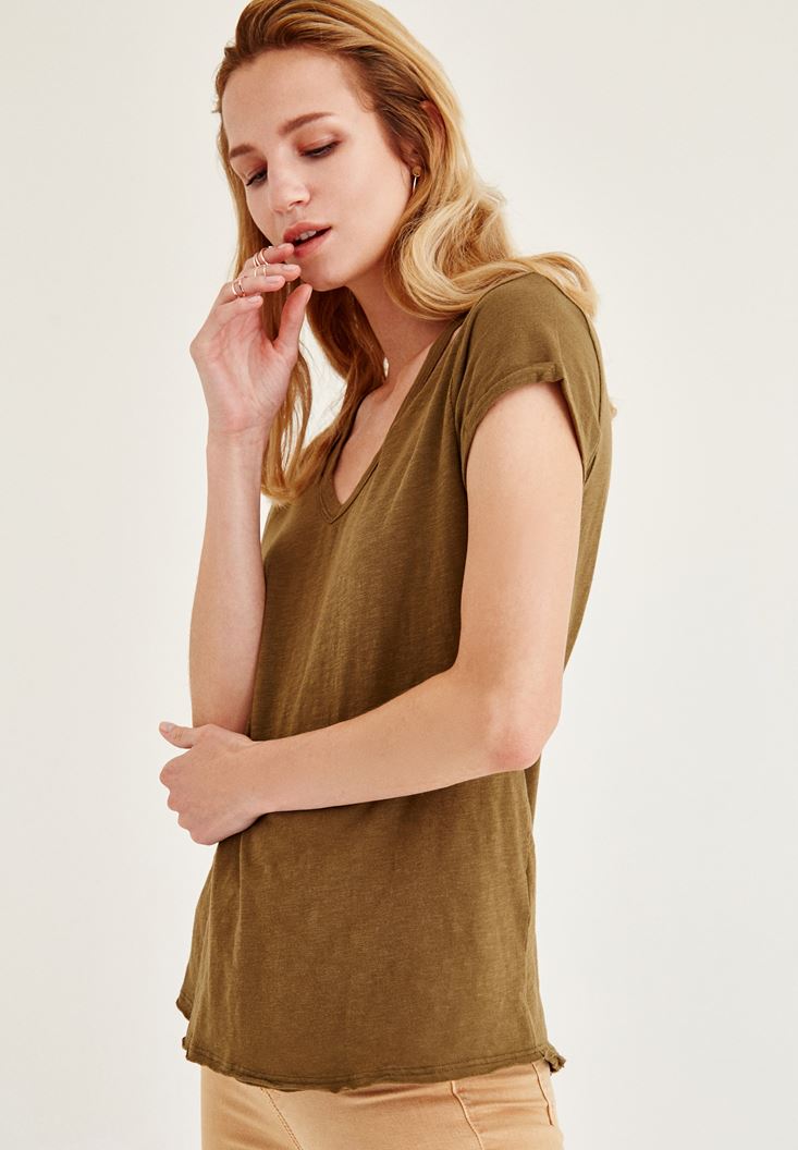 Oxxo Biye Detaylı V Yaka Tişört 2061372909
