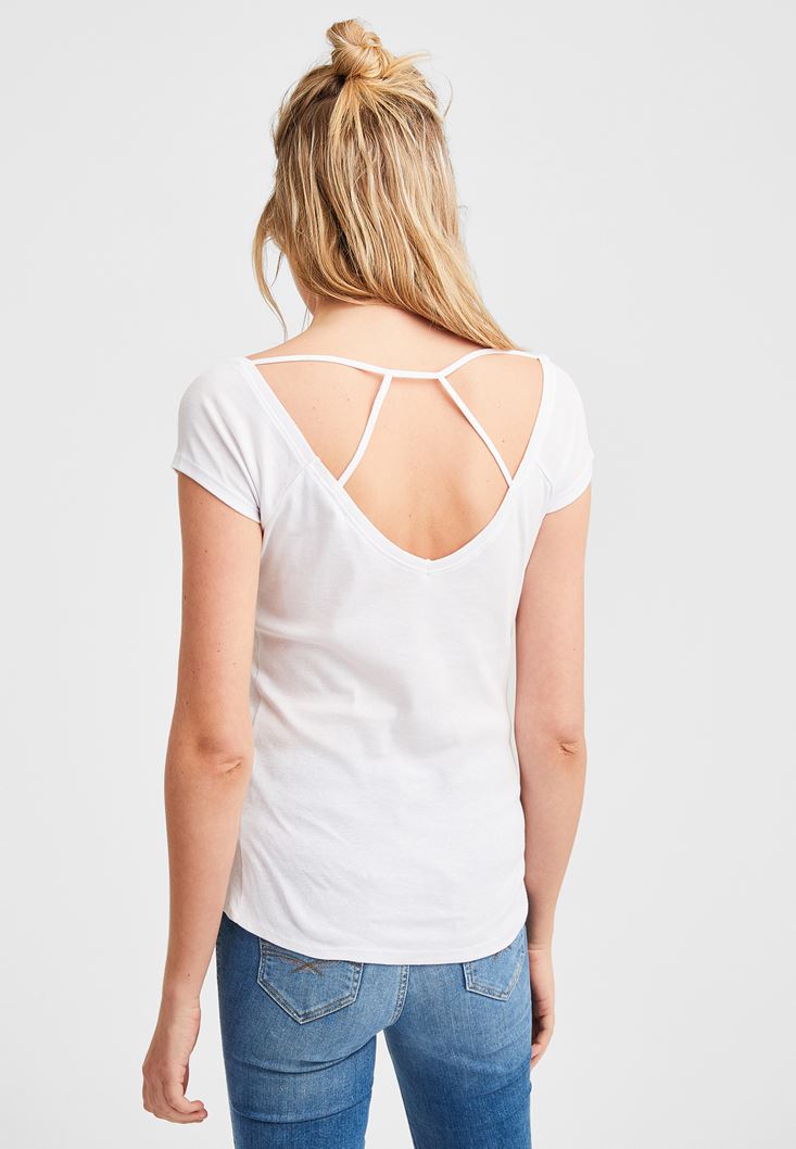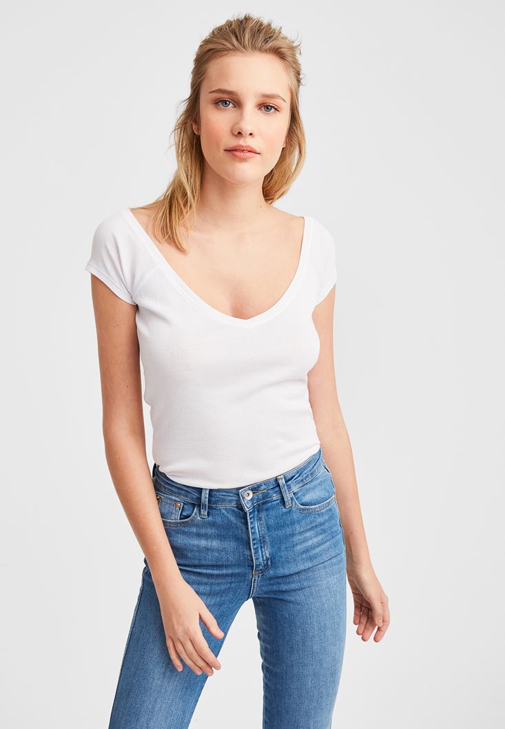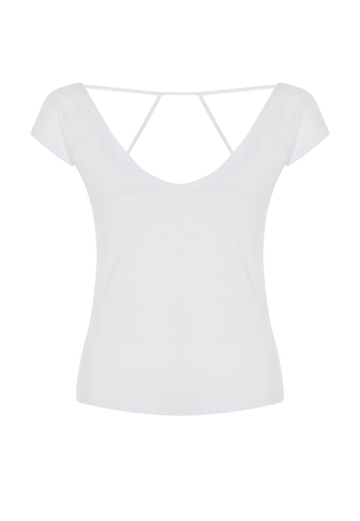 • Bayan Beyaz Biye Detaylı V Yaka Tişört