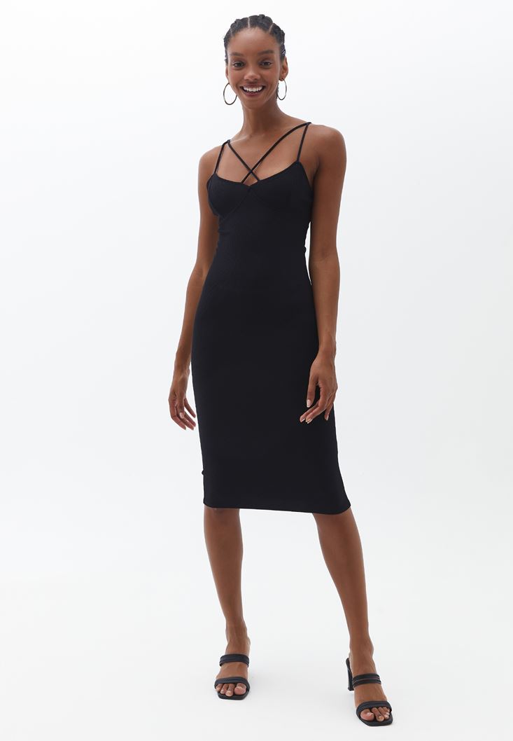 • Bayan Siyah Biyeli Midi Boy Elbise