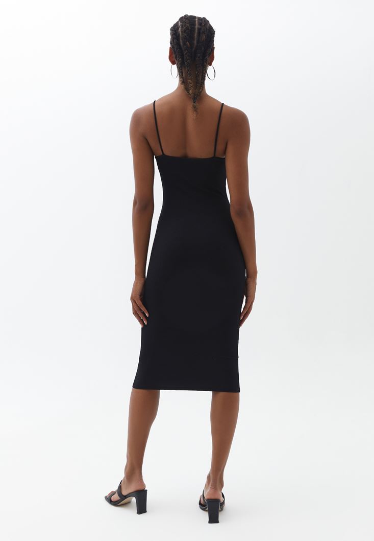 Siyah Biyeli Midi Boy Elbise