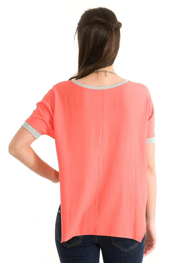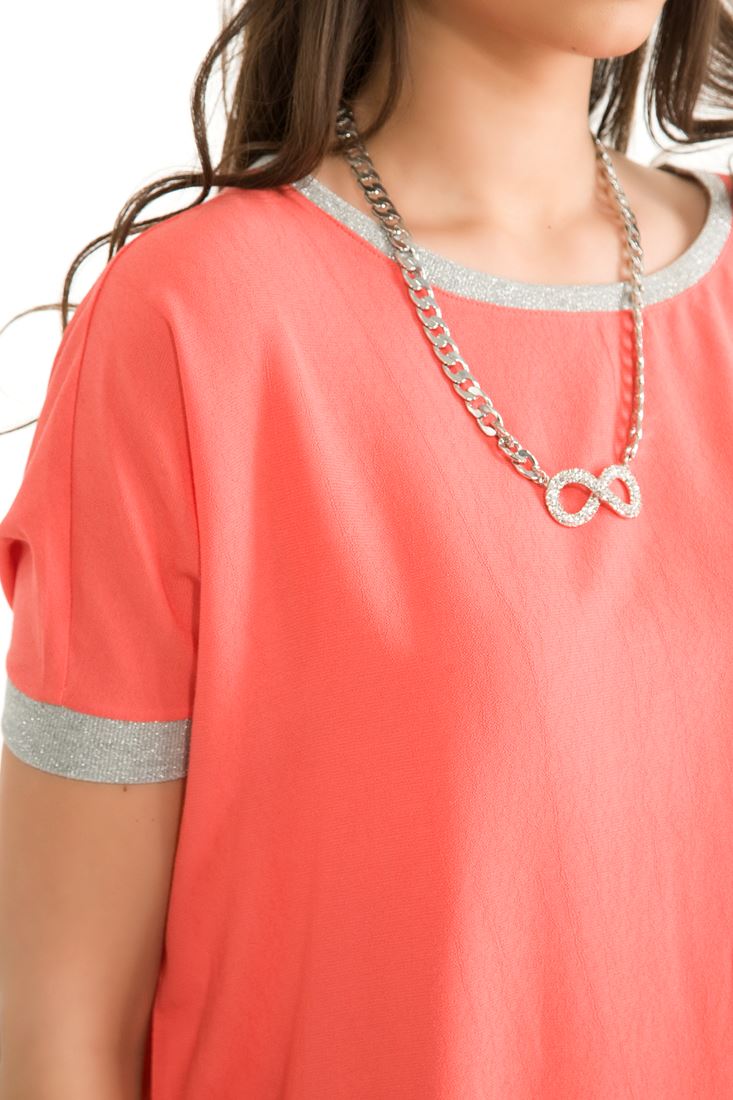Yaka ve kolları sim detaylı kısa kollu bluz.