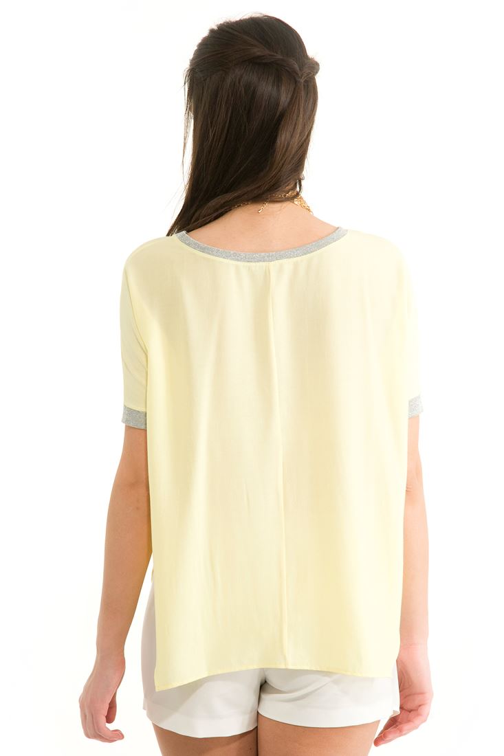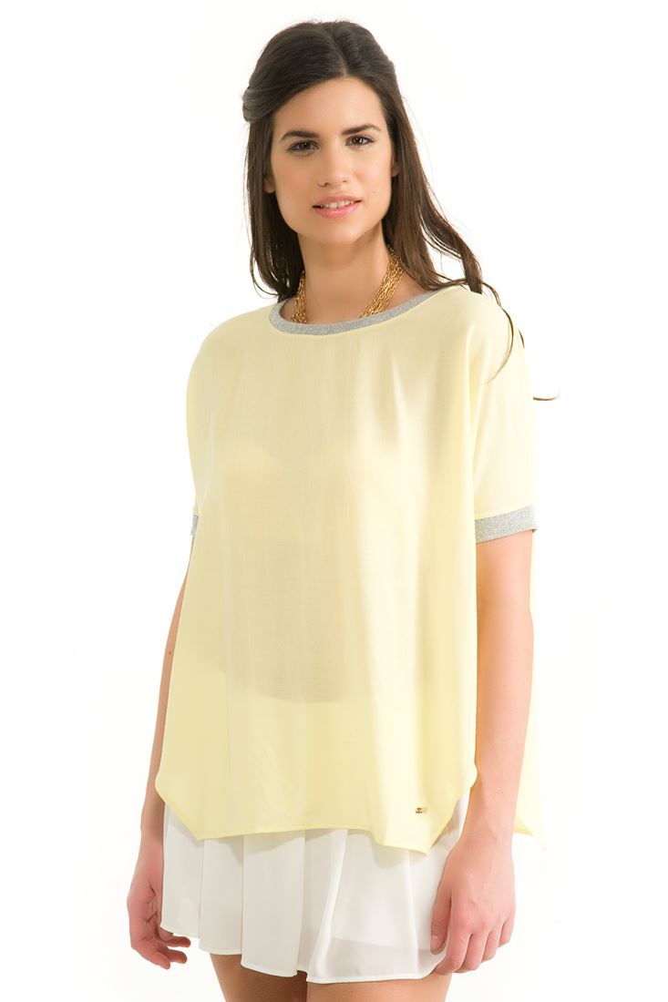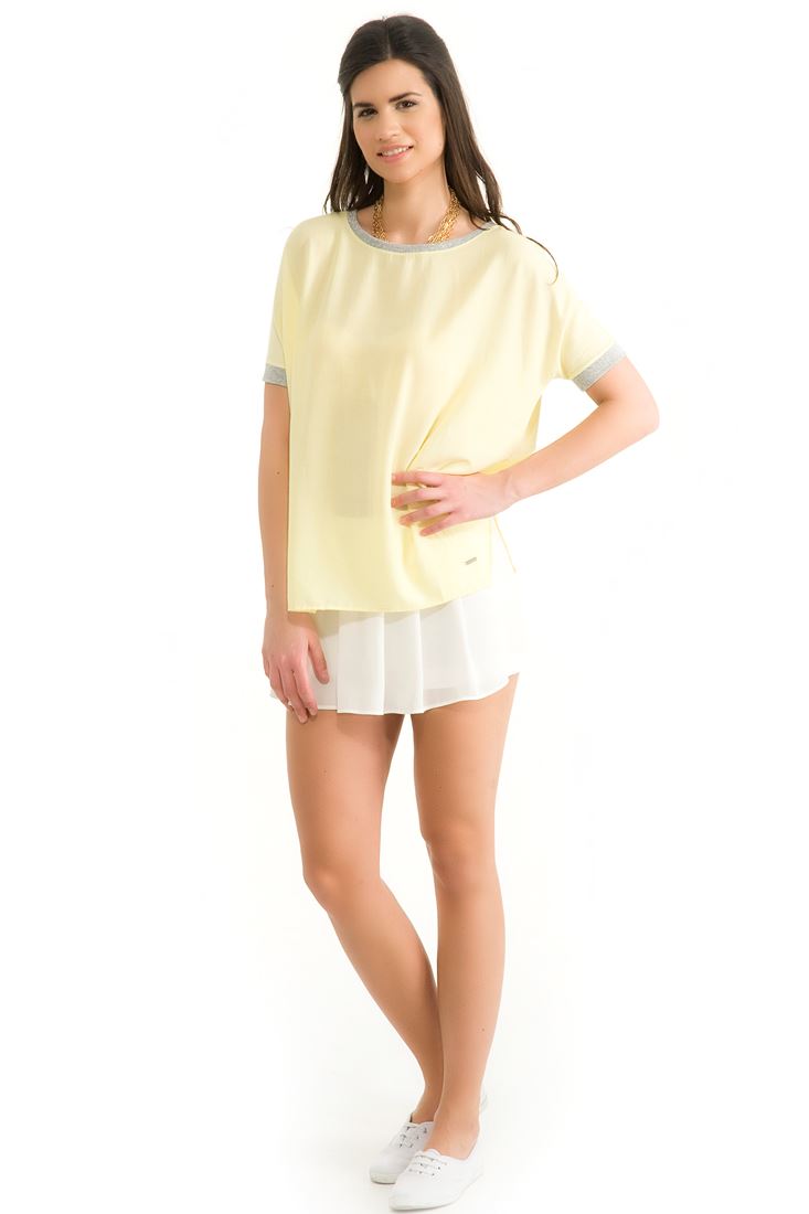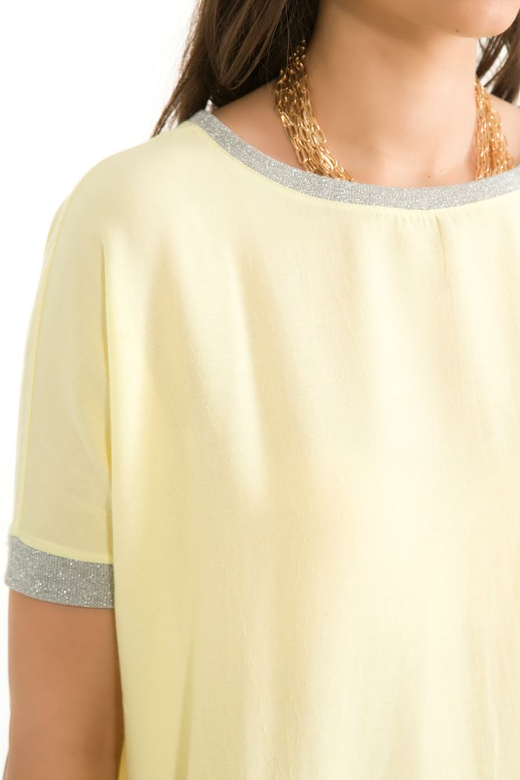 Yaka ve kolları sim detaylı kısa kollu bluz.