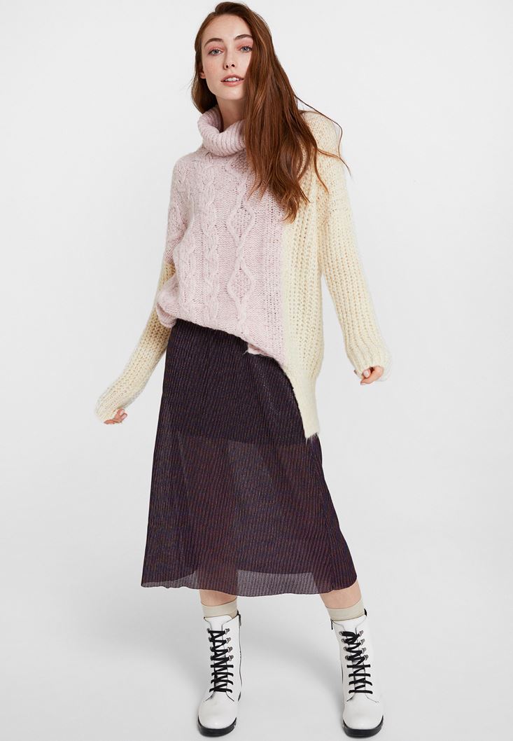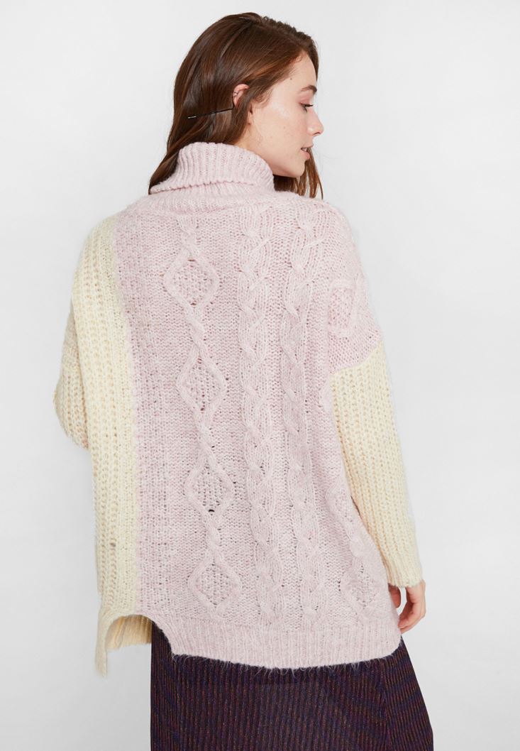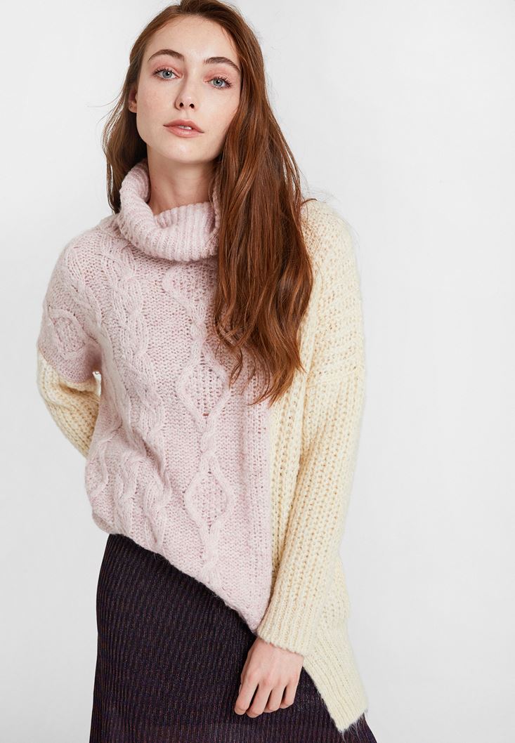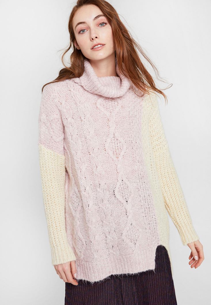 Pembe Boğazlı Blok Desen Triko