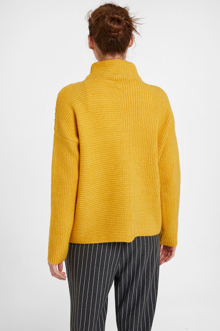 • Bayan Sarı Boğazlı Çizgi Dokulu Kazak