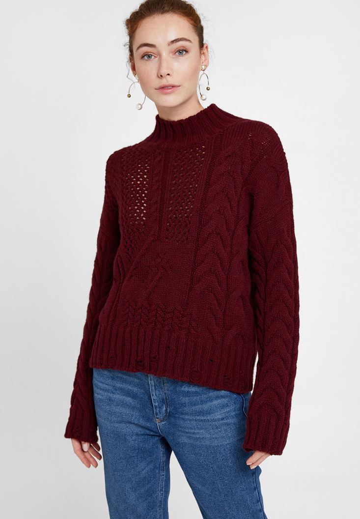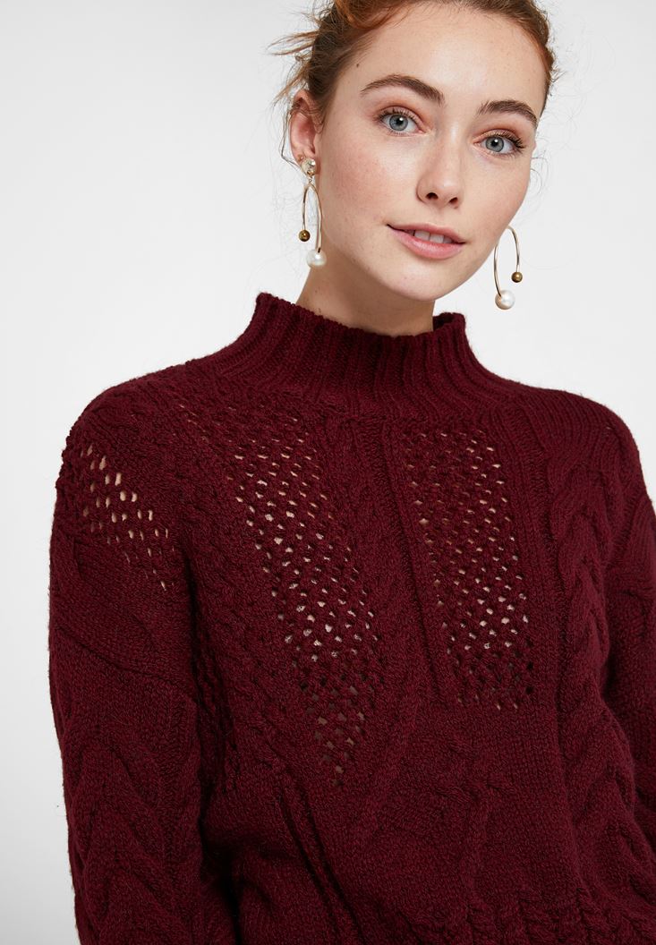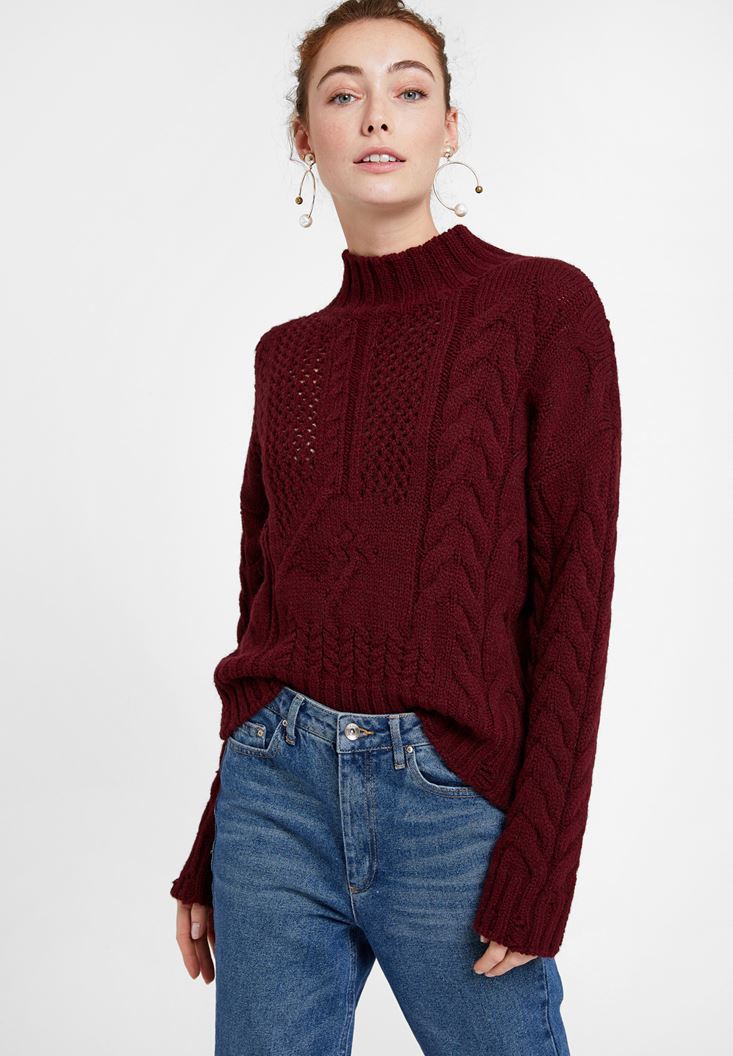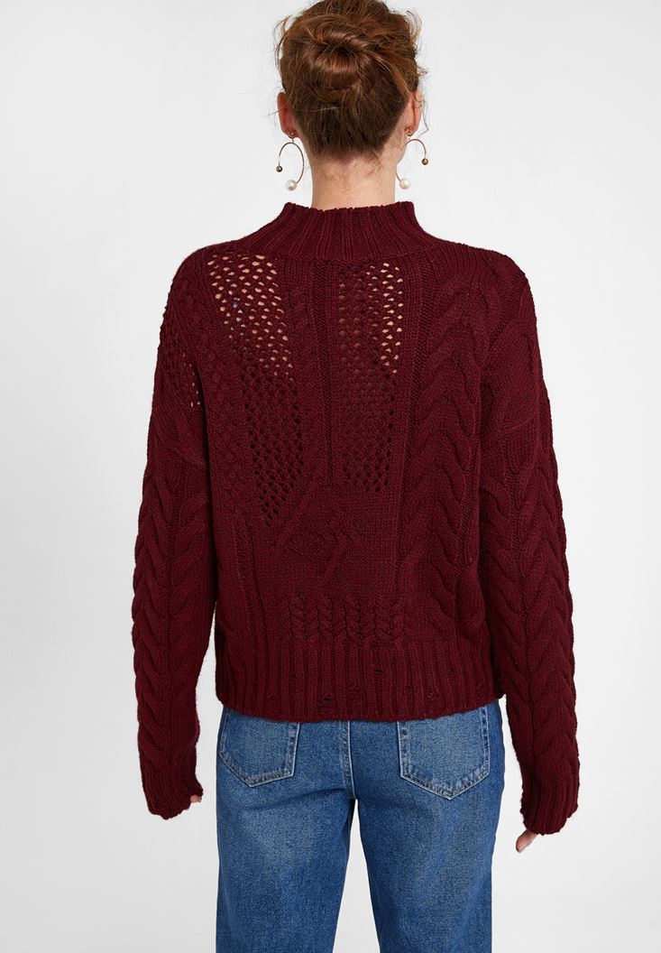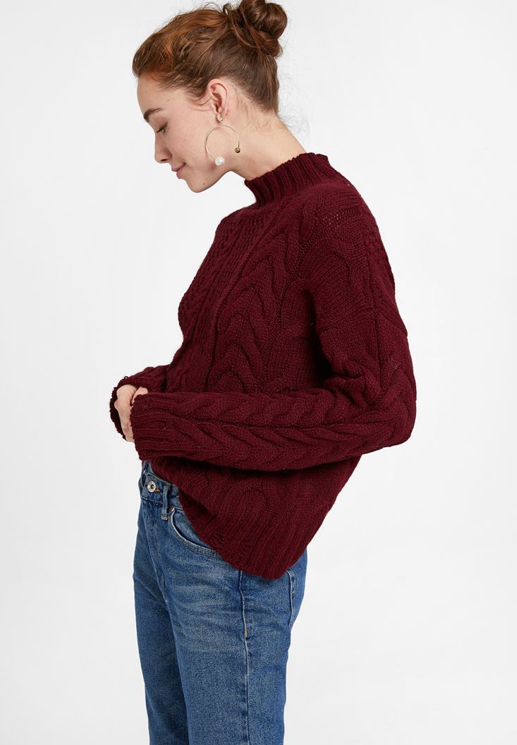 • Bayan Bordo Boğazlı Örgülü Kazak
