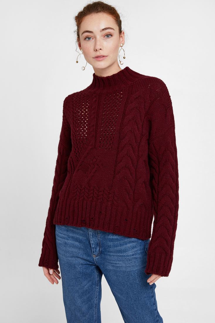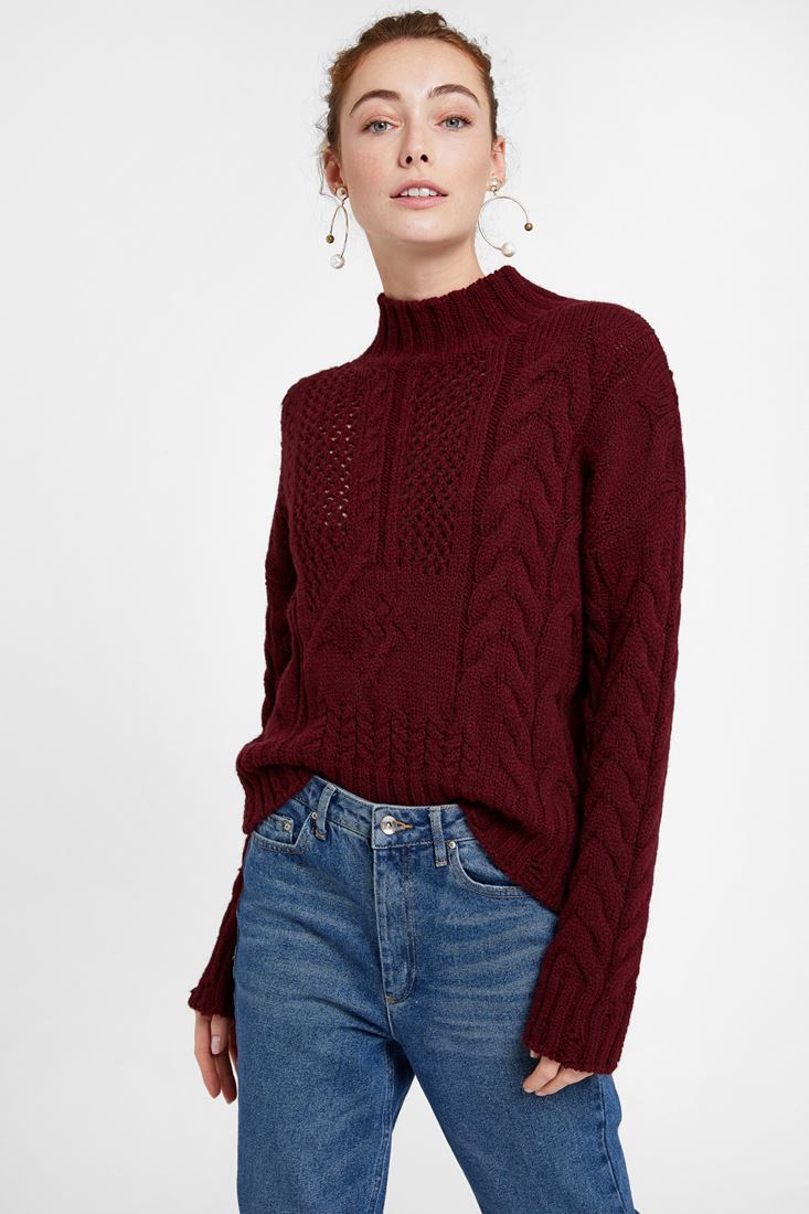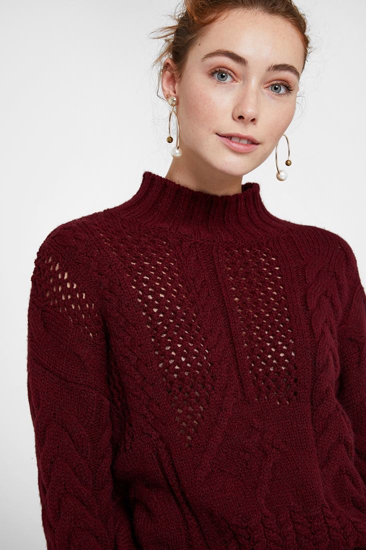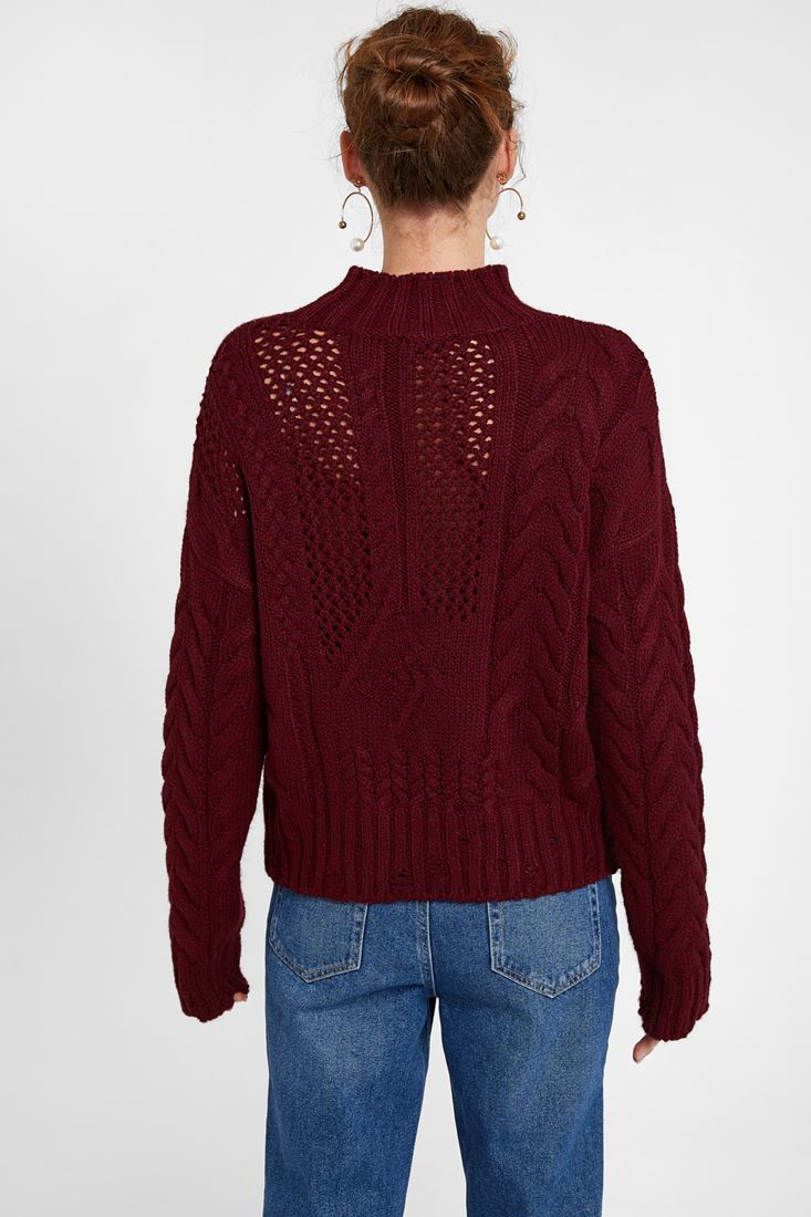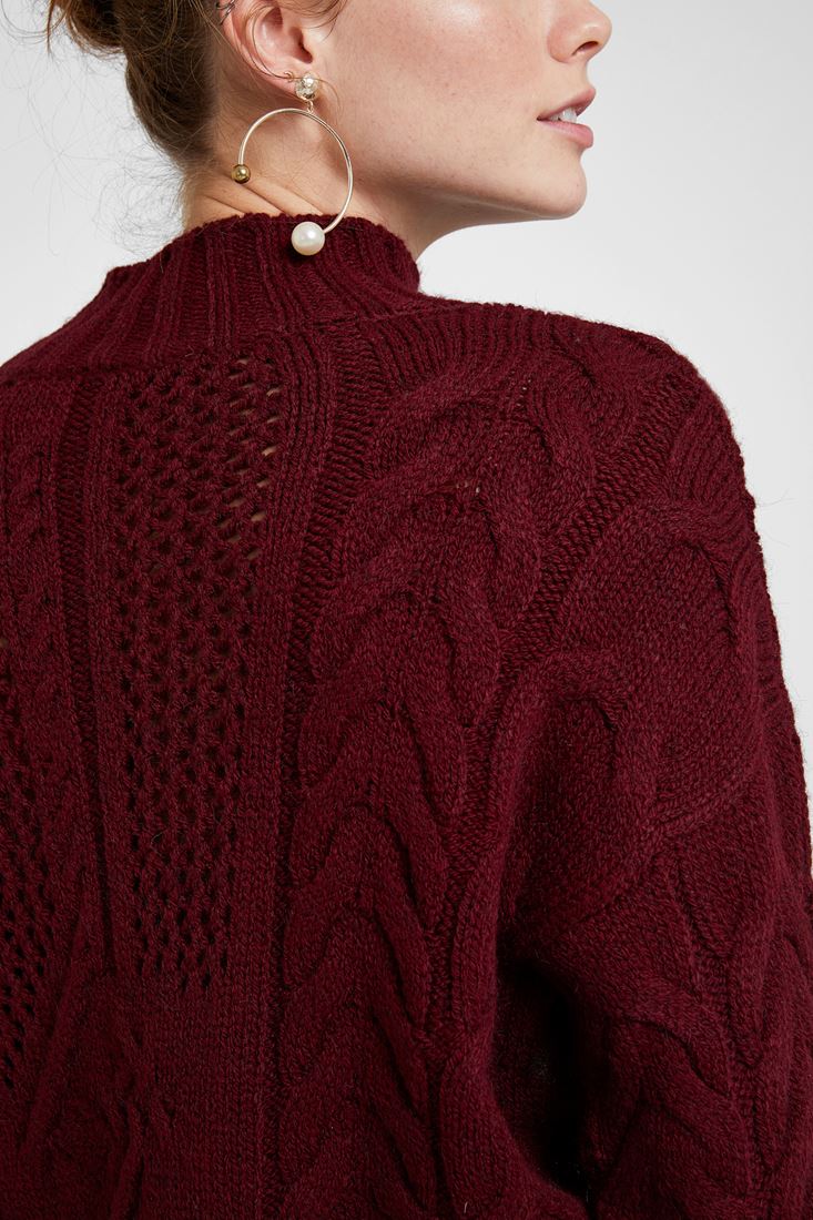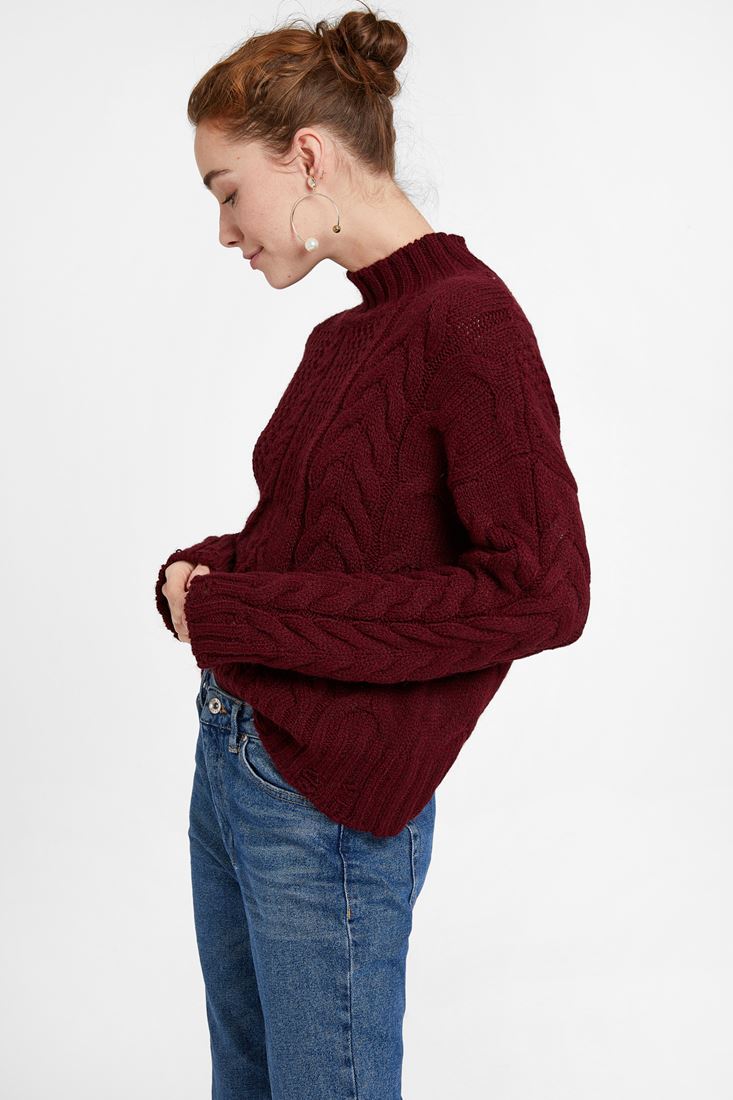 • Bayan Bordo Boğazlı Örgülü Kazak