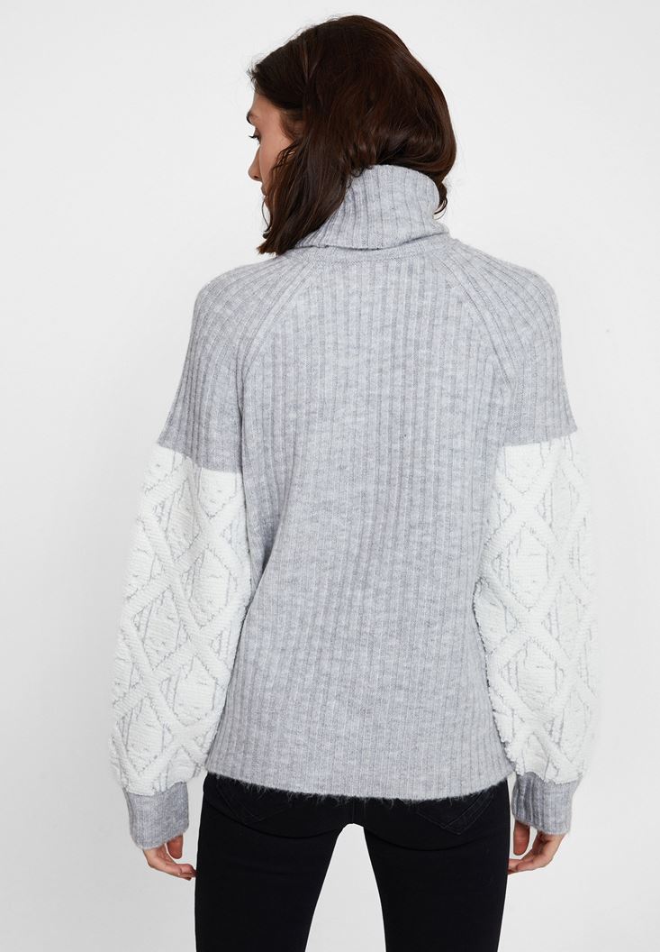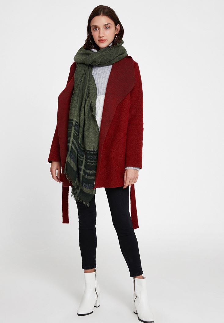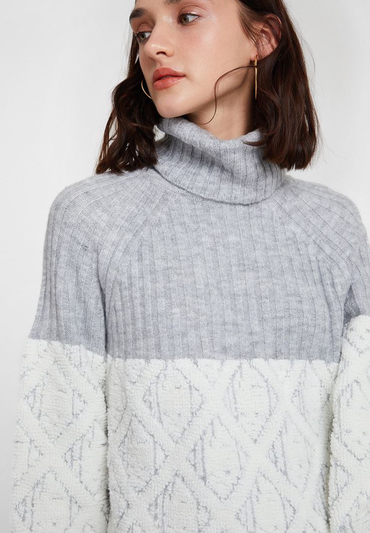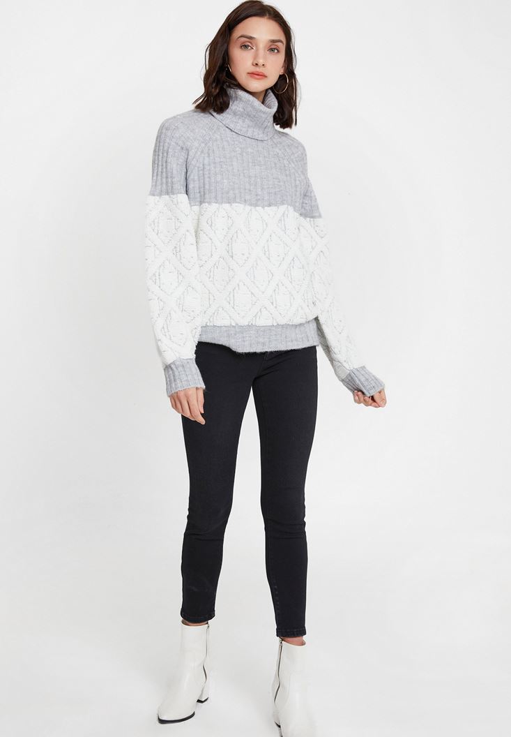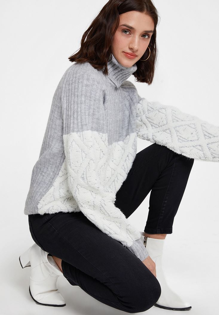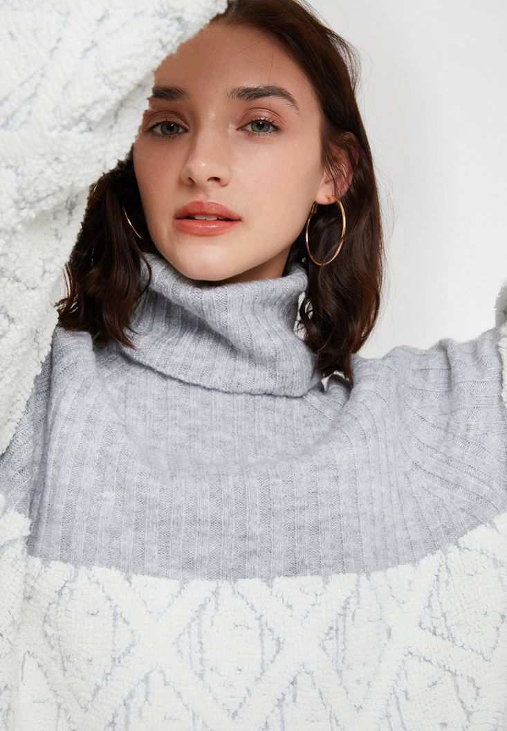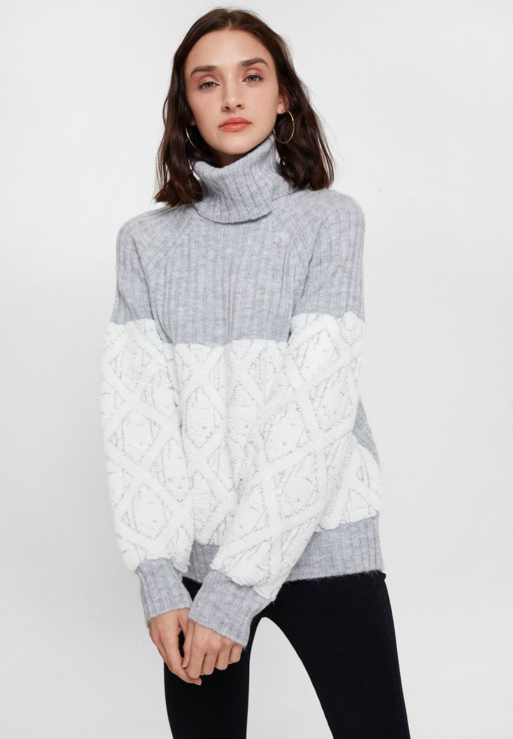 Boğazlı Triko modeli yumuşak dokusu, zarif detayları ve dökümlü kesimi ile farklı tarzlara sahip kombinlerde kullanılabilecek kurtarıcı kazak modelleri arasında yer alıyor. Boğazlı yaka kesiminde kullanılan boyuna fitil detaylar yaka kısmında hoş bir görünüm ortaya çıkarıyor. Triko modelinin kup hizasından aşağısında kullanılan desenler de tasarıma zarif bir hareketlilik kazandırıyor. Bel ve bilek kesiminde bulunan lastik detaylar hem boğazlı yaka ile doku ve renk uyumuna sahip olması hem de tasarımın duruşunu güçlendirmesi sebebiyle hoş bir görünüm ortaya çıkarıyor. Kazağın dokusunda bulunan akrilik sıcak tutan yapısı ve kendine has canlı görüntüsü ile OXXO’nun dokulardan aldığımı ilhamı bu tasarıma başarılı bir şekilde yansıtmasına yardımcı oluyor.