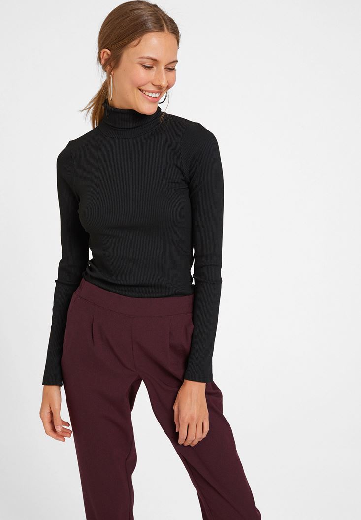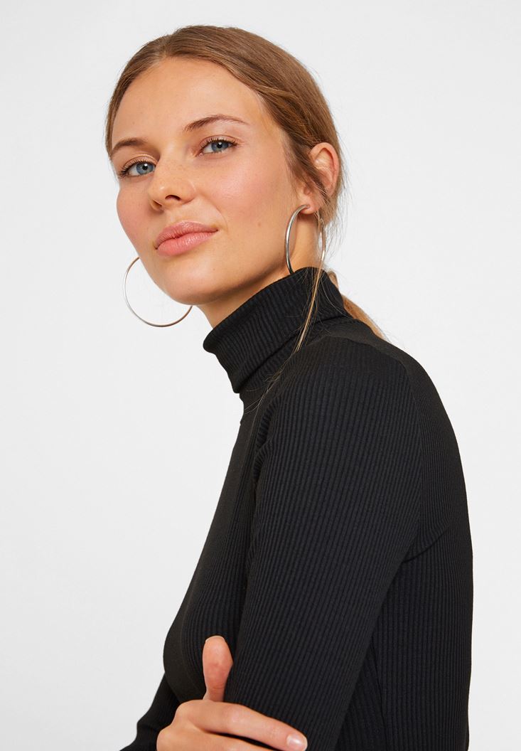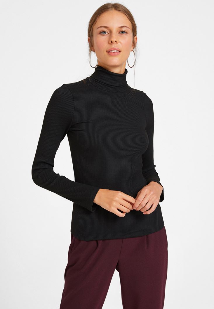 • Bayan Siyah Boğazlı Uzun Kol Detaylı Triko