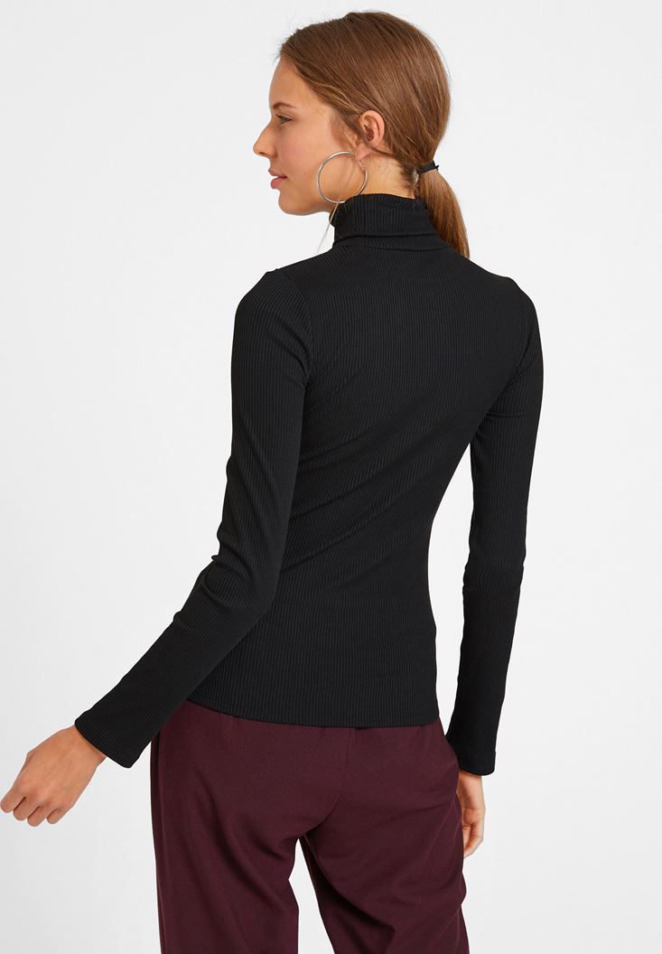 Siyah Boğazlı Uzun Kol Detaylı Triko