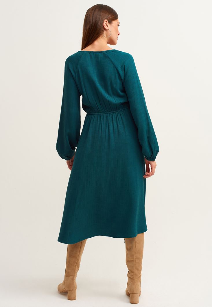 • Bayan Yeşil Bohem Balon Kollu Elbise