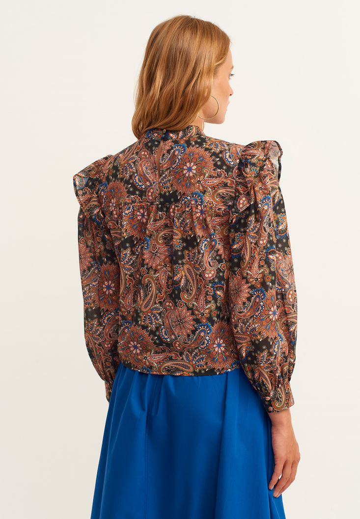 Çok Renkli Bohem Desenli Fırfırlı Bluz