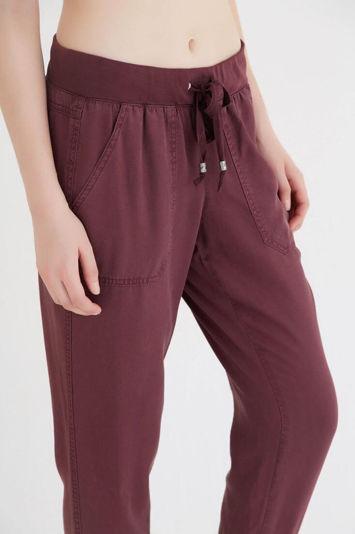 • Bayan Bordo Bol Kesim Bilekli Pantolon