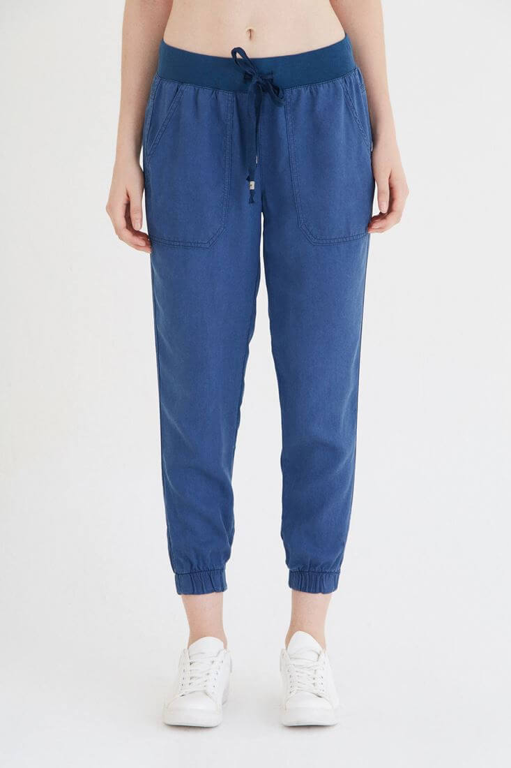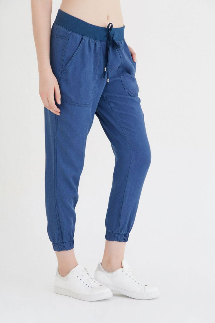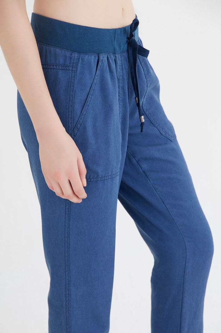 • Bayan Mavi Bol Kesim Bilekli Pantolon
