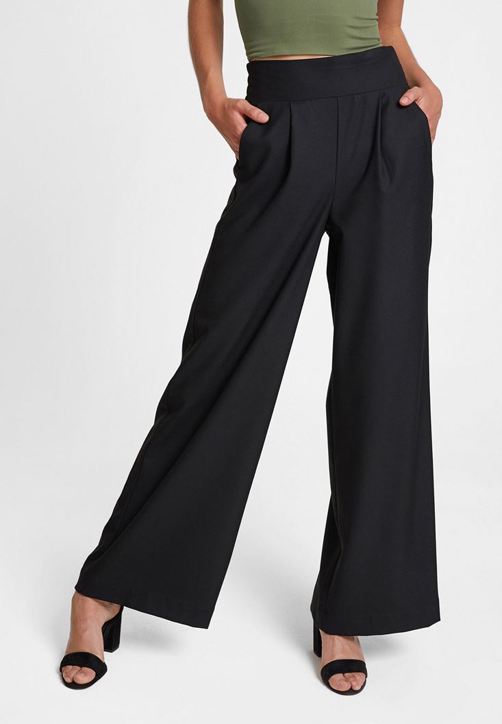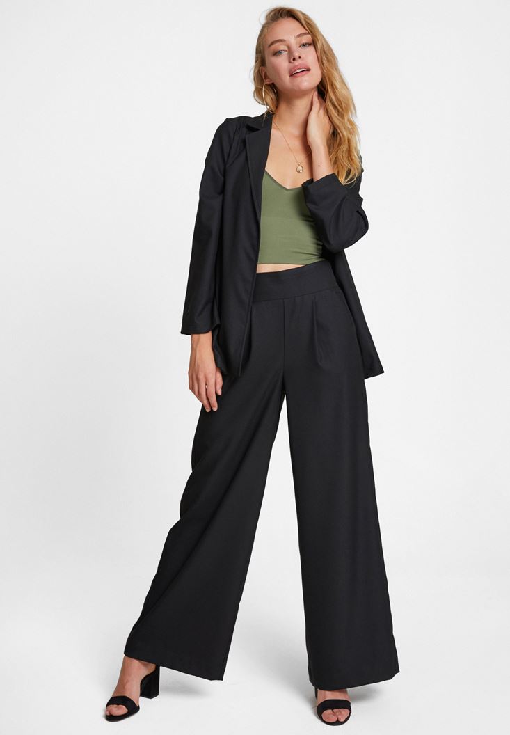 • Bayan Siyah Bol Paça Cepli Pantolon