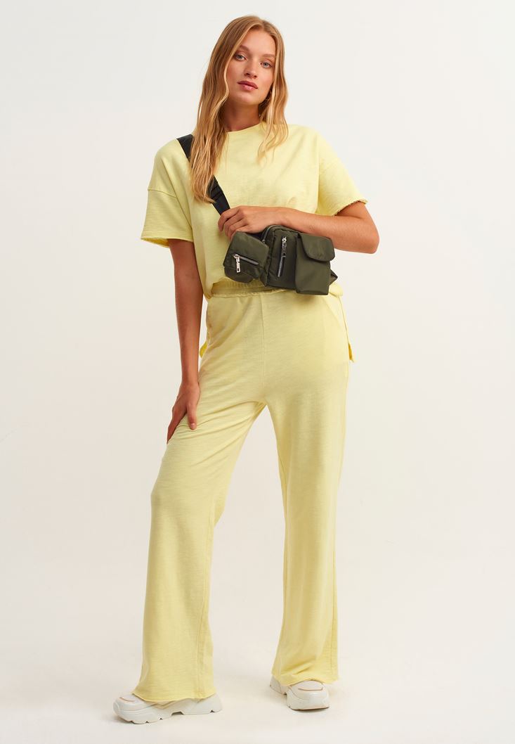 • Bayan Sarı Bol Paça Sweat Pantolon