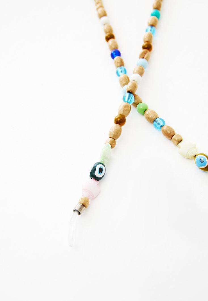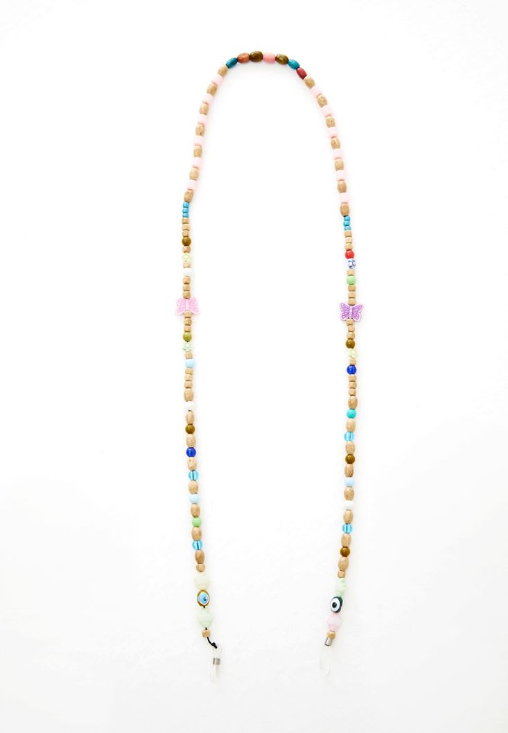 Çok Renkli Boncuk Detaylı Gözlük Zinciri