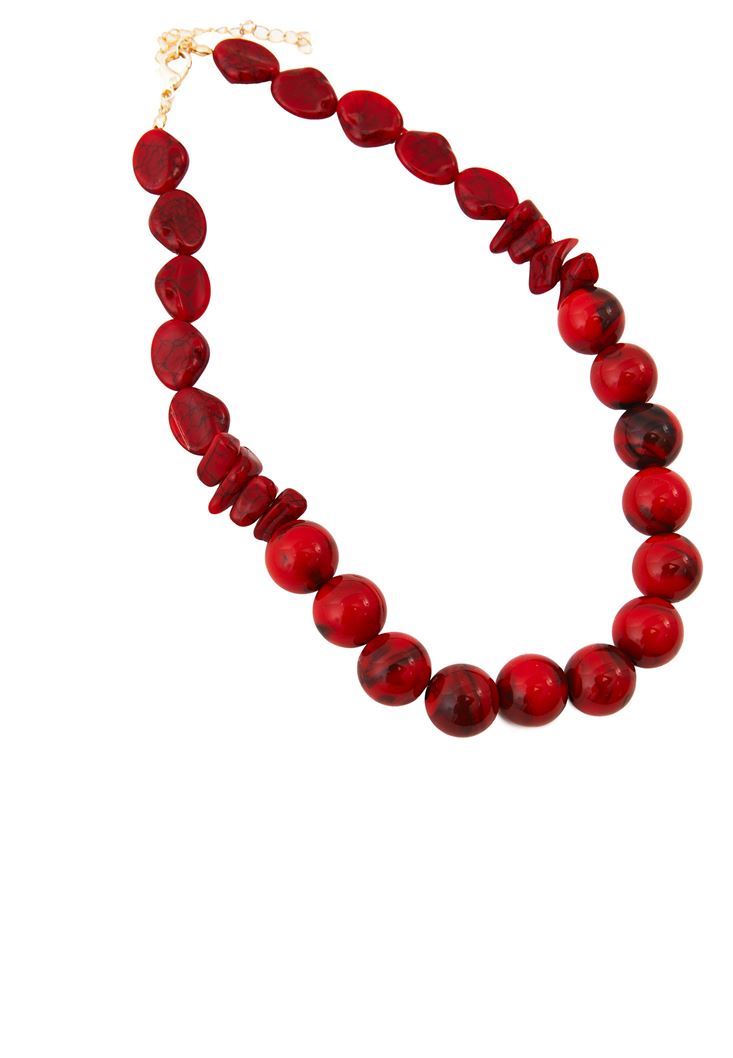 • Bayan Kırmızı Boncuk Detaylı Kolye