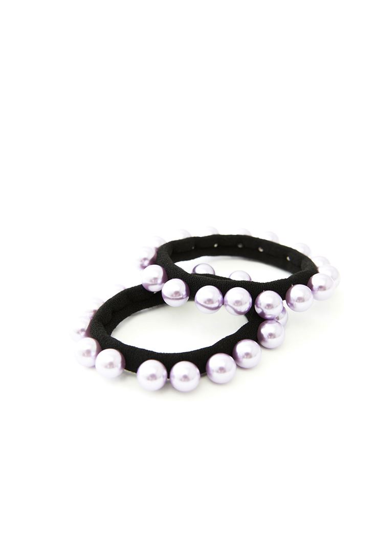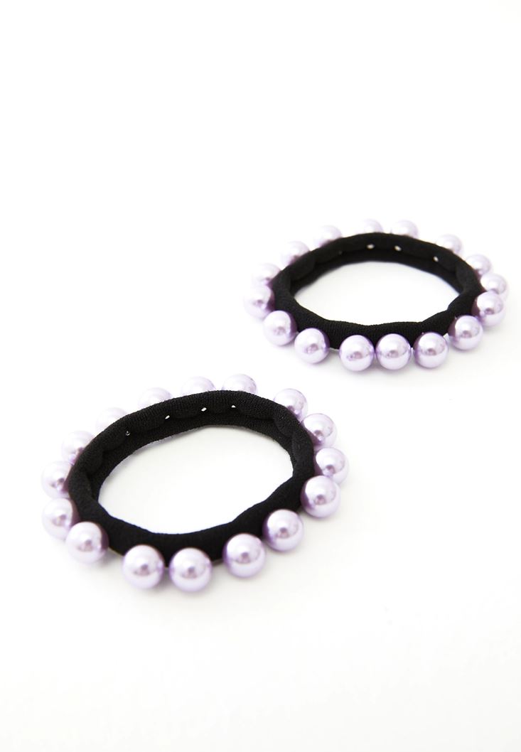 • Bayan Lila Boncuk Detaylı Lastik Toka Seti