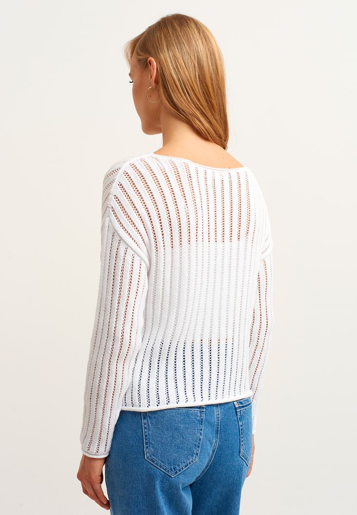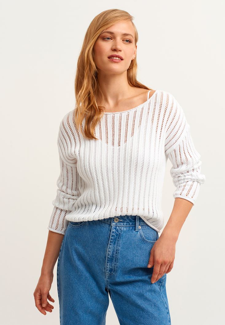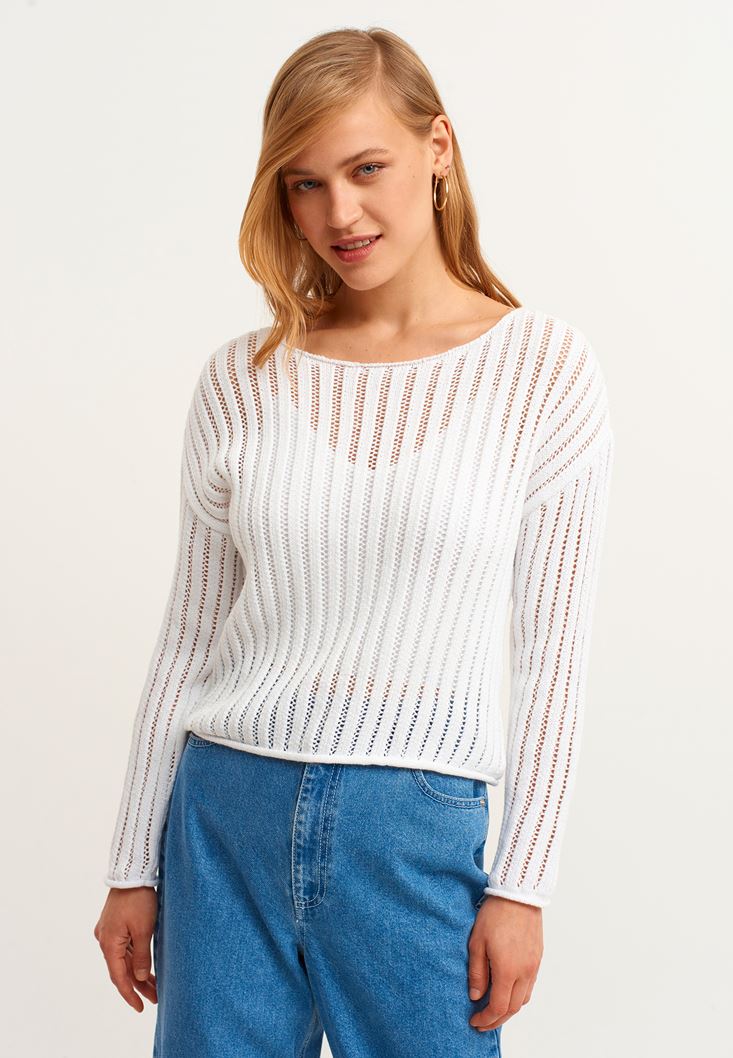 • Bayan Beyaz Bot Yaka Ajurlu Kazak