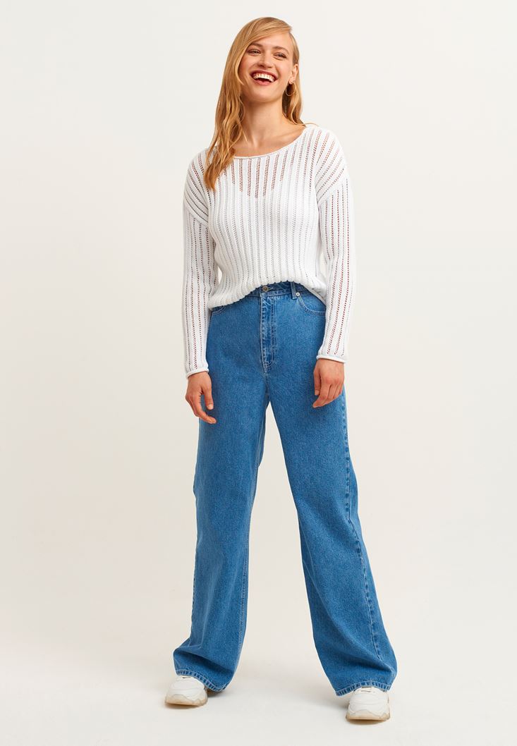 Beyaz Bot Yaka Ajurlu Kazak
