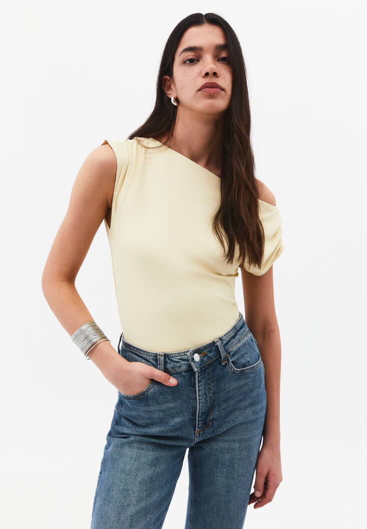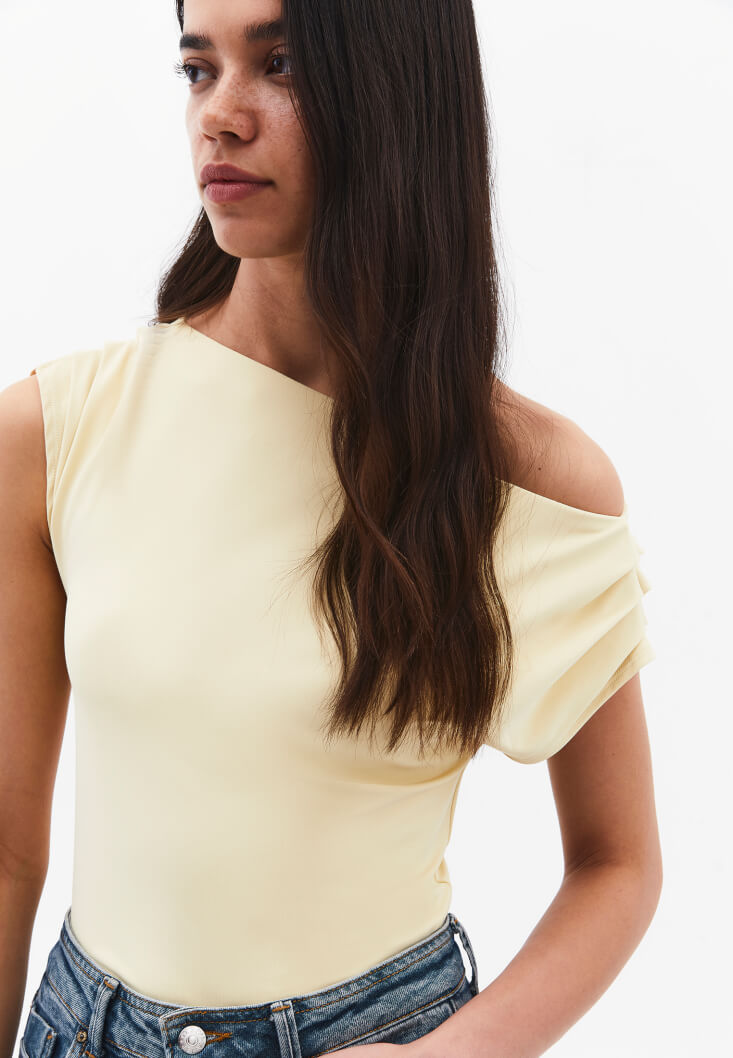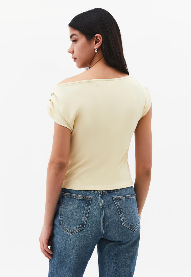 Sarı Bot Yaka Büzgü Detaylı Bluz