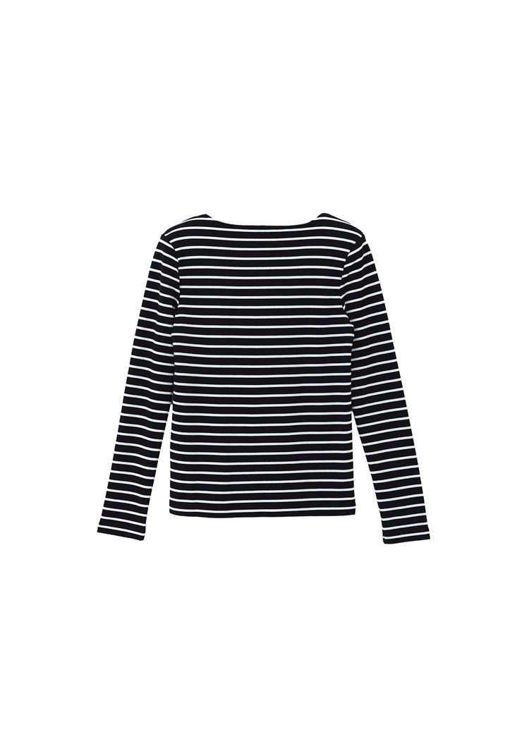 %100 pamuk içerikli doku, bot yaka, uzun kollu, çizgi desenli, bedene yakın rahat fit.