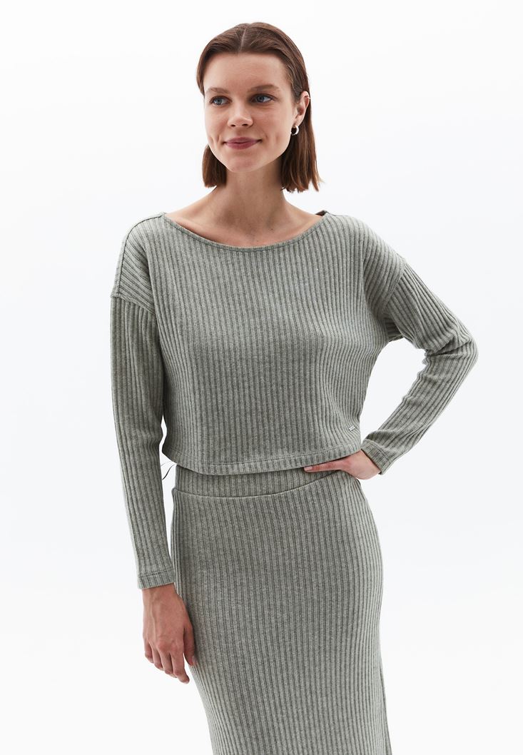 • Bayan Yeşil Bot Yaka Crop Kazak