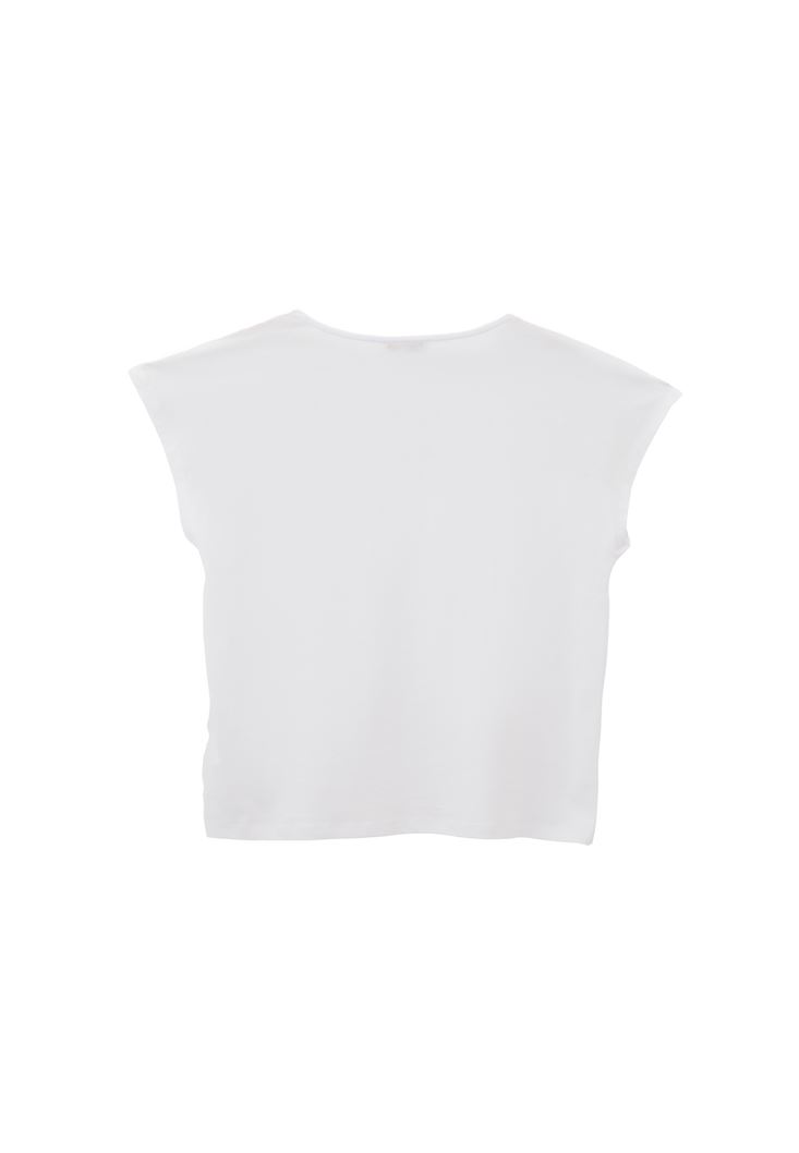 Beyaz Bot Yaka Dantel Detaylı Tişört