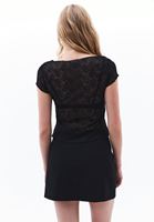 • Bayan Siyah Bot Yaka Dantel Tişört