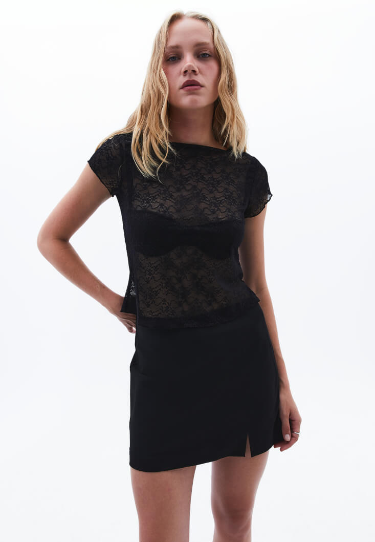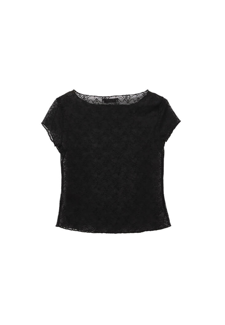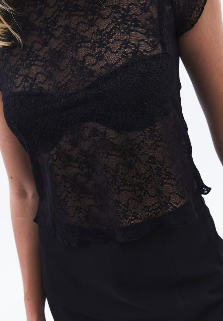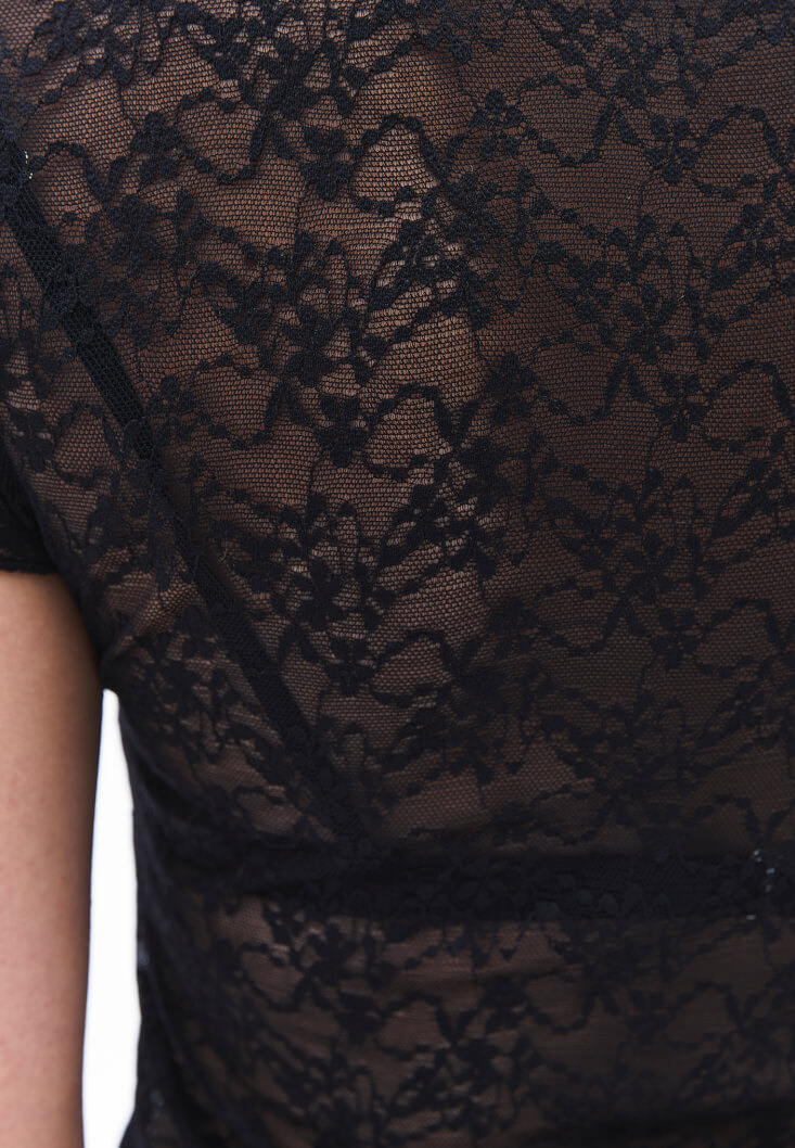 • Bayan Siyah Bot Yaka Dantel Tişört