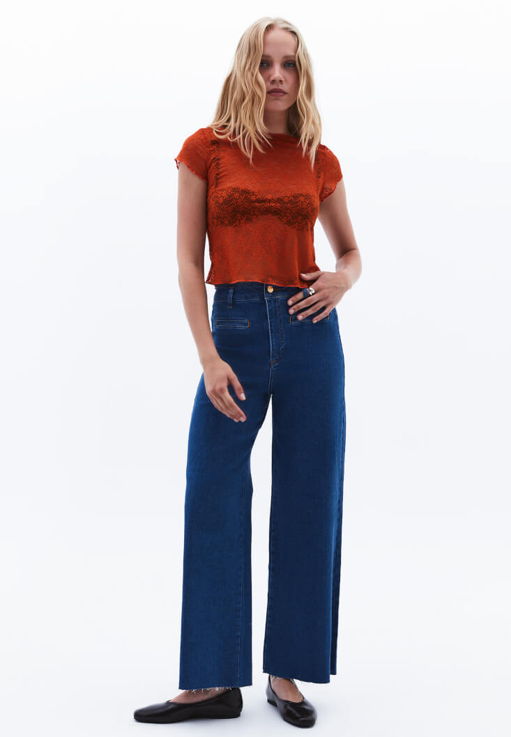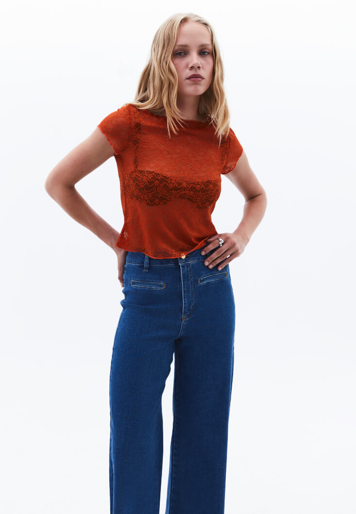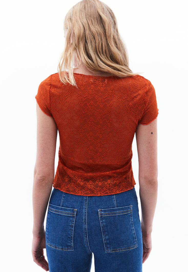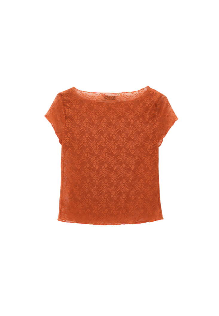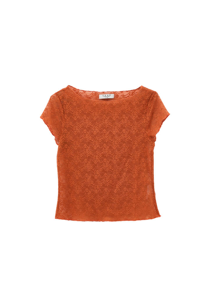 Turuncu Bot Yaka Dantel Tişört