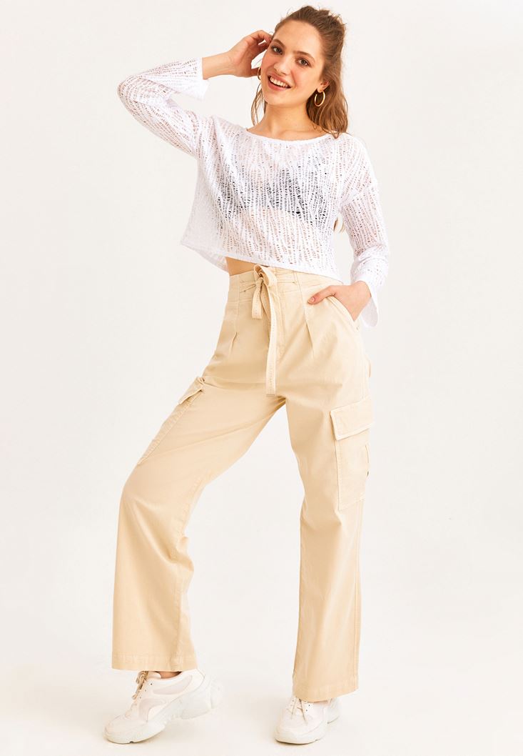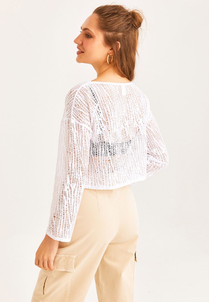 Beyaz Bot Yaka Dantelli Bluz